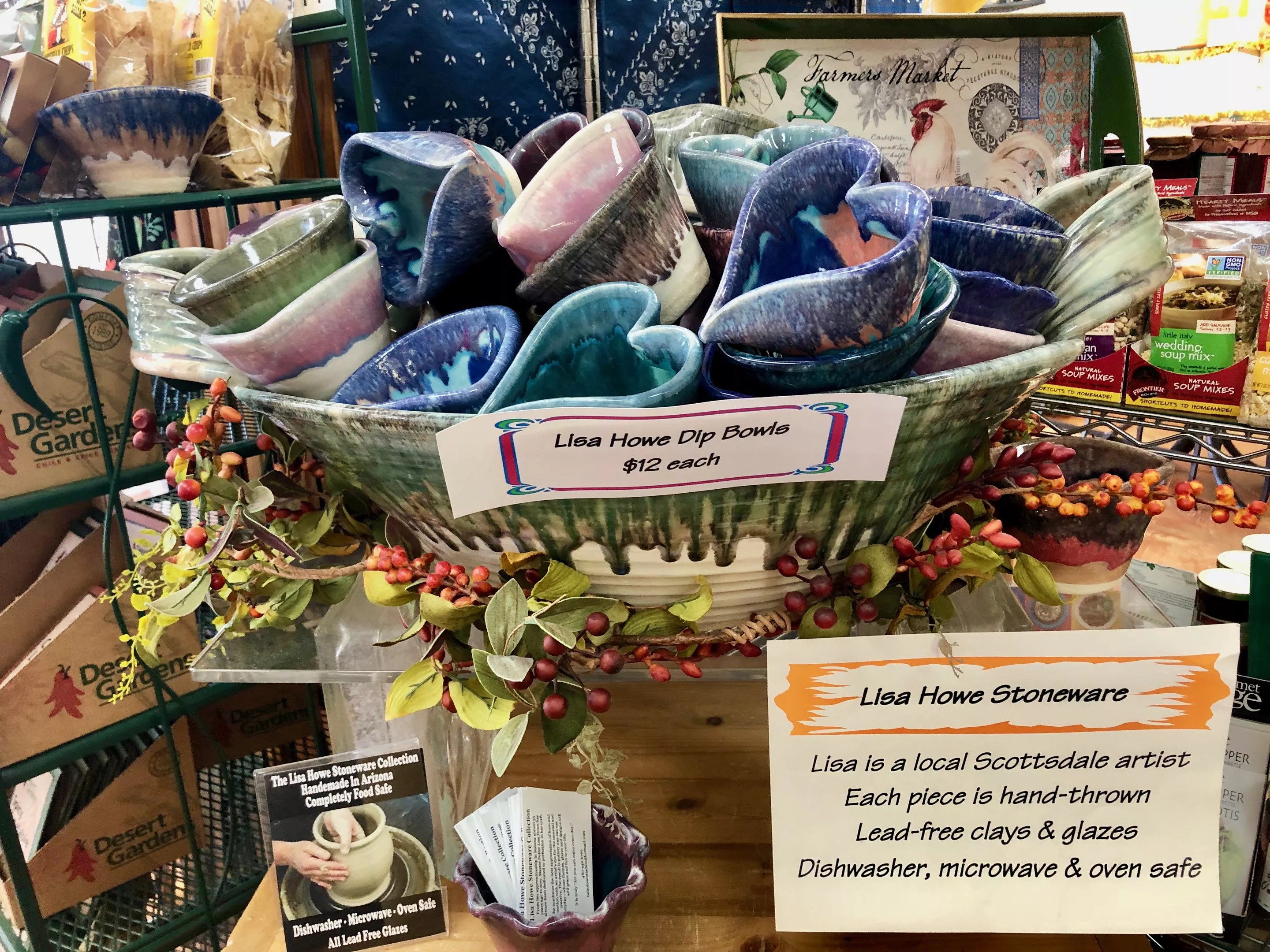Lisa Howe Stoneware is sold at Sweet Basil Gourmetware & Cooking School.