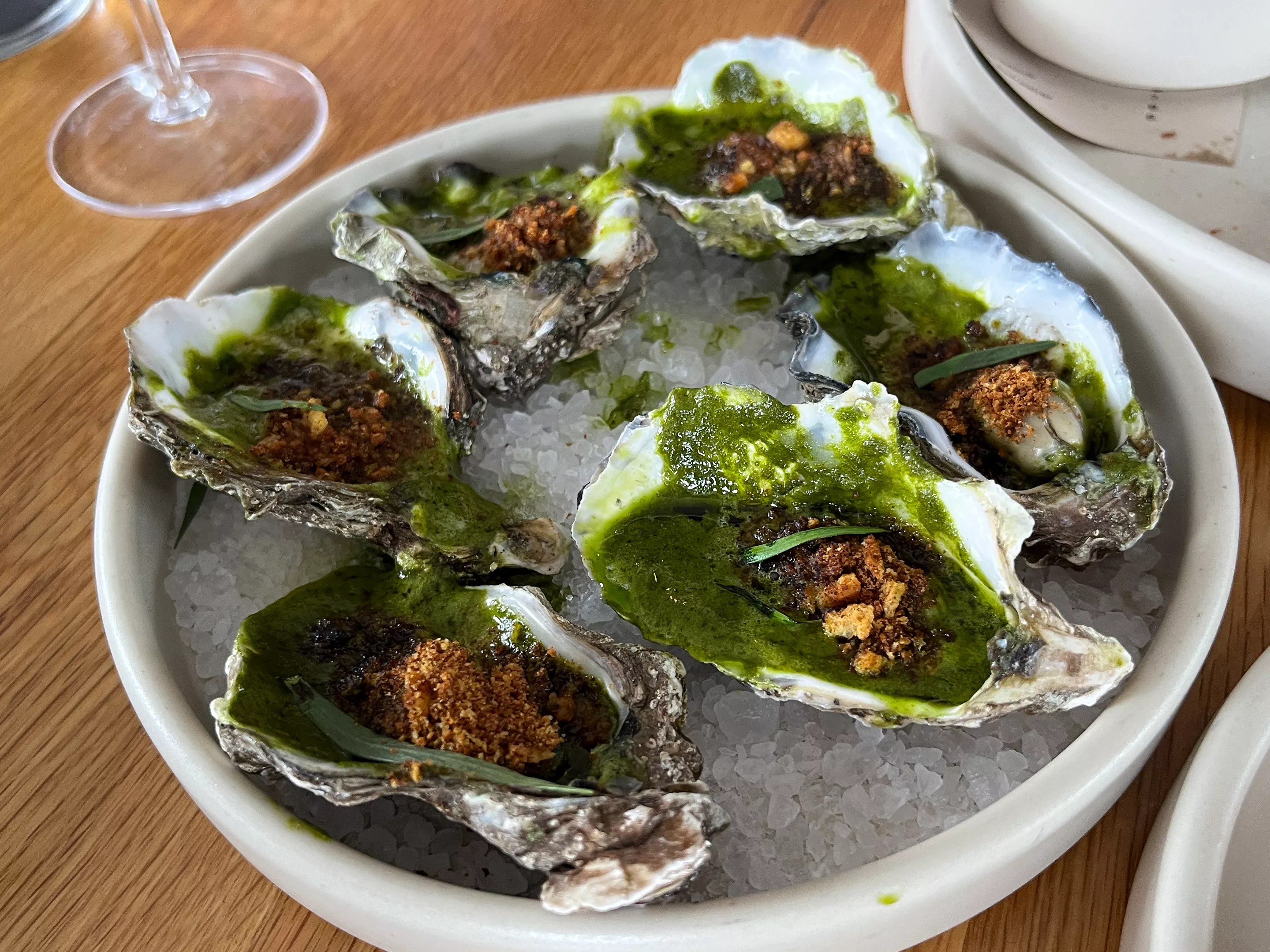 14202 N. Scottsdale Road, Scottsdale Bar Cena just hit the scene in late October and expanded their menu in December, but I’m sure enjoying everything I’ve seen so far. My only complaint about this dish is that I had to share it. Chef and owner Dom Ruggiero – along with his chef de cuisine Zack Myers – is slinging some bangers, and the man has a talent for bringing wit and technique together. Here, he’s taken the spirit of the classic New Orleans sandwich and turned it into a fancypants riff on fried cheese that’s equal parts playful and delicious. Provolone croquettes are studded with sesame and fried to a crisp, then topped with a bright olive and fennel relish. The flavors are as fabulous as they are familiar, but what makes the dish is the texture. The croquettes are surprisingly light, and when you bite, provolone comes oozing out almost more like a fonduta. Next time I’m getting my own. Donald Hawk’s grilled oysters with spinach-epazote butter, squash breadcrumbs and chiltepin are a brilliant modern Southwestern take on Oysters Rockefeller. Dominic Armato