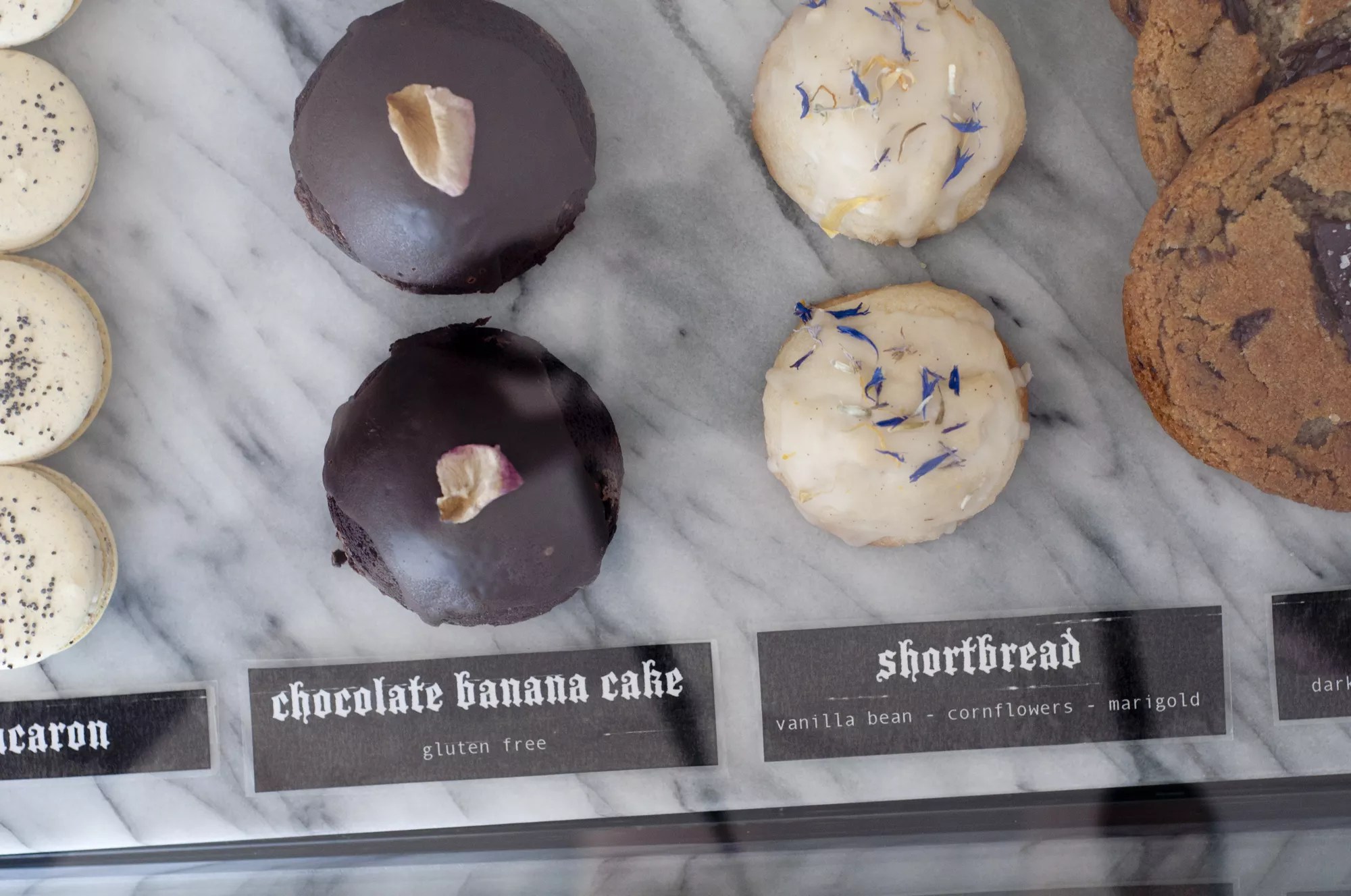 The pastry case is stocked throughout the day. During a recent visit, there were rows of salted dark chocolate chip cookies, sticky cinnamon rolls, iced shortbread topped with cornflower and marigold petals, lavender cake with periwinkle icing and rainbow sprinkles, and plenty more.