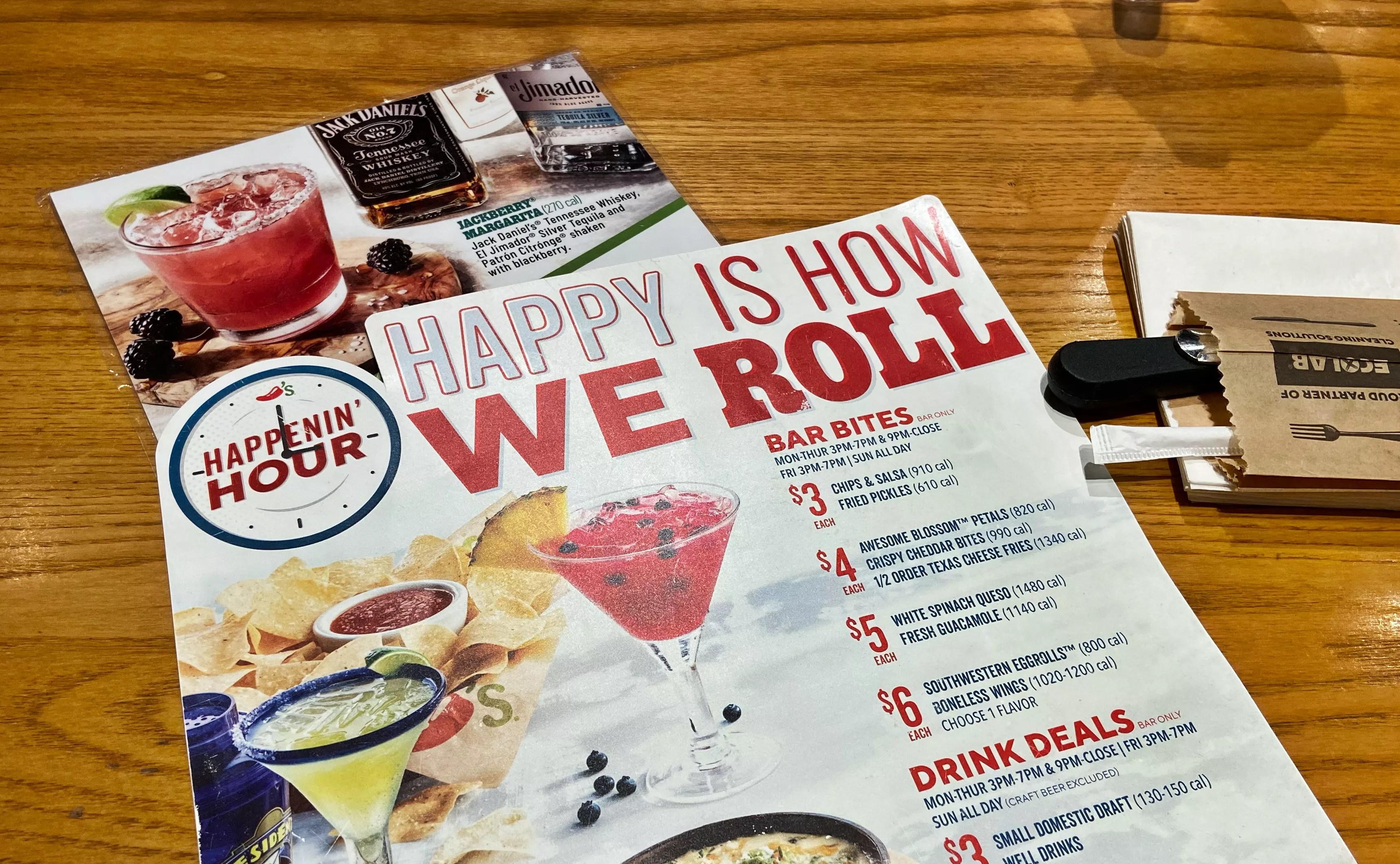 Chili’s provides two Happy Hour menus while requiring you to turn to your phone for their food menu.