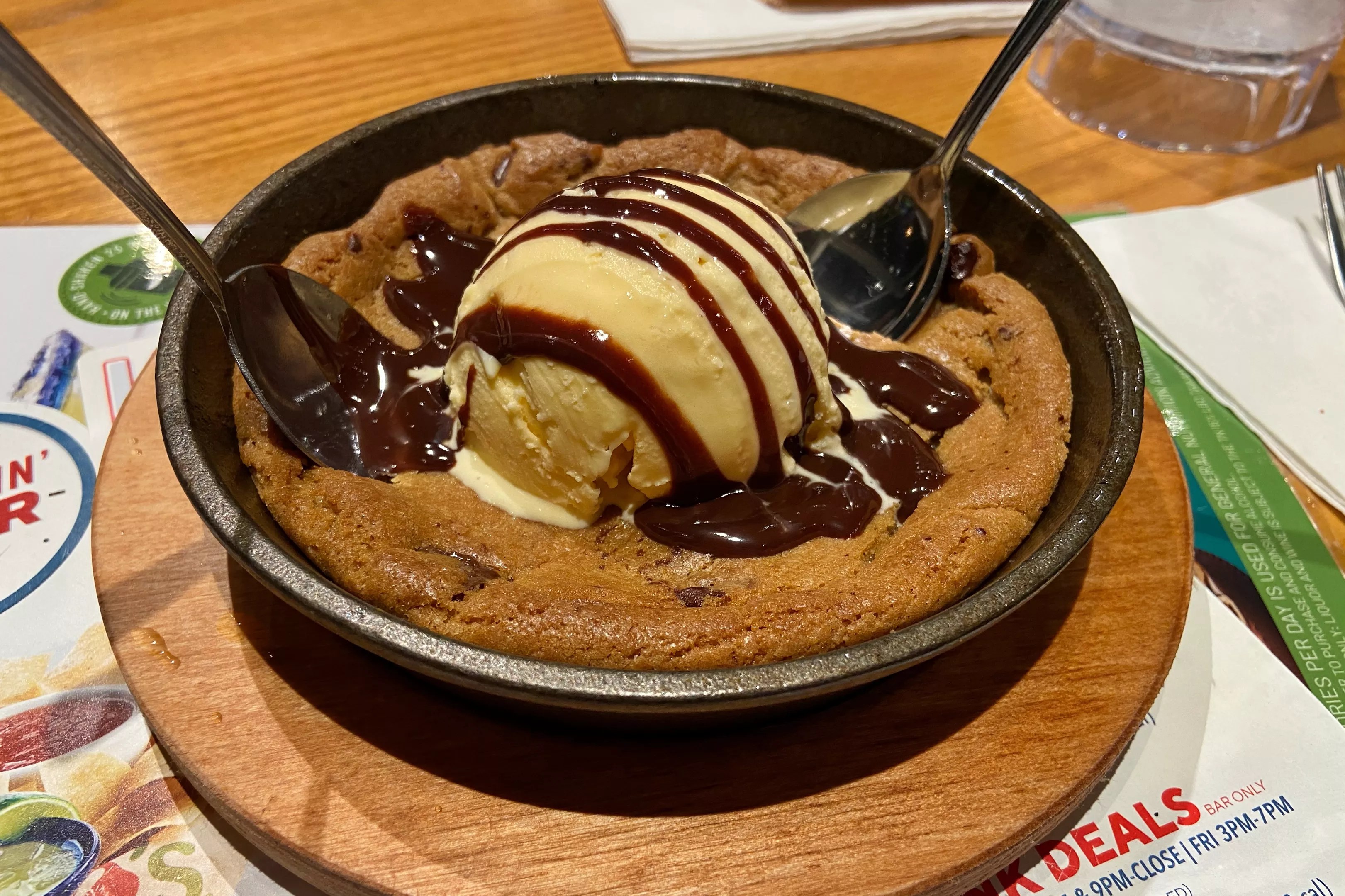 The Skillet Chocolate Chip Cookie. Yes, the skillet is hot, yes, you will burn your hand on it in front of your date.