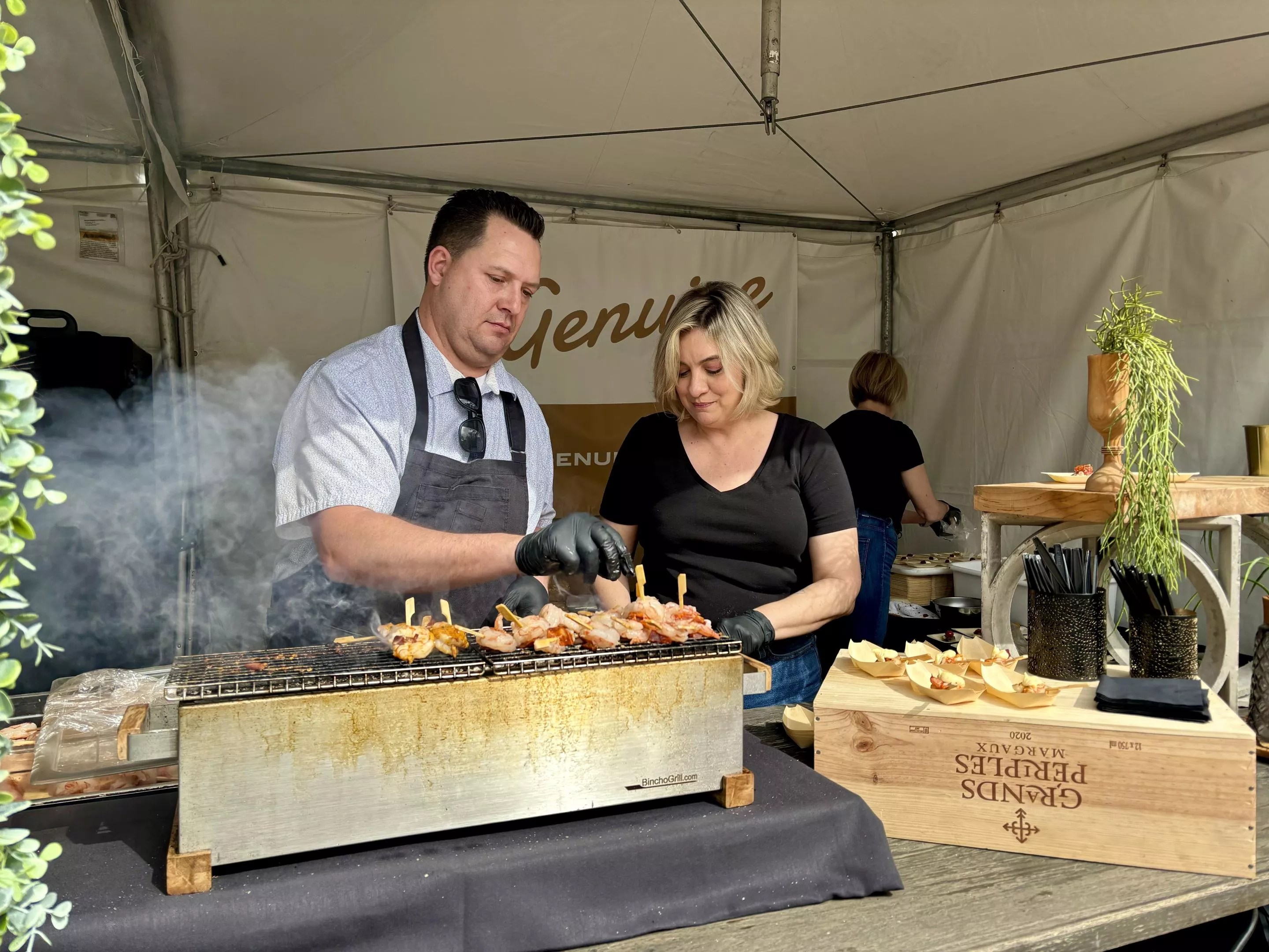 At The Genuine tent, plump shrimp sizzled on a tabletop grill.