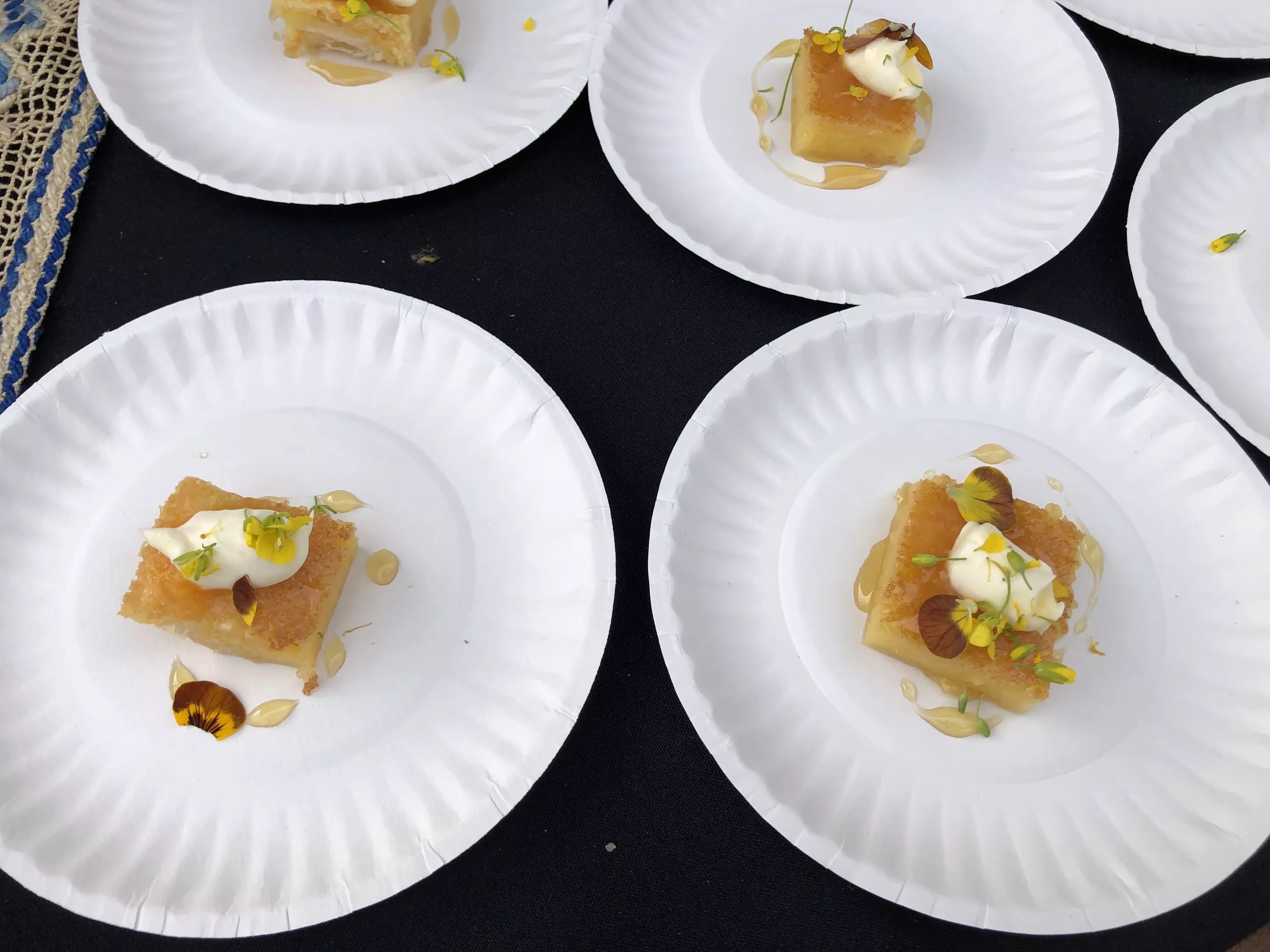 In the past, we’ve called Tamara Stanger a pie mage. Today, she lived up to her reputation as a craftswoman of pies so stellar they seem to defy logic and the basic properties of ingredients. A square of apricot pie came with vermouth cream and wild creosote honey. One bite and the concentrated flavor just kind of wrenched your head sideways, as if slapped. Next? A smile curling to your ears.