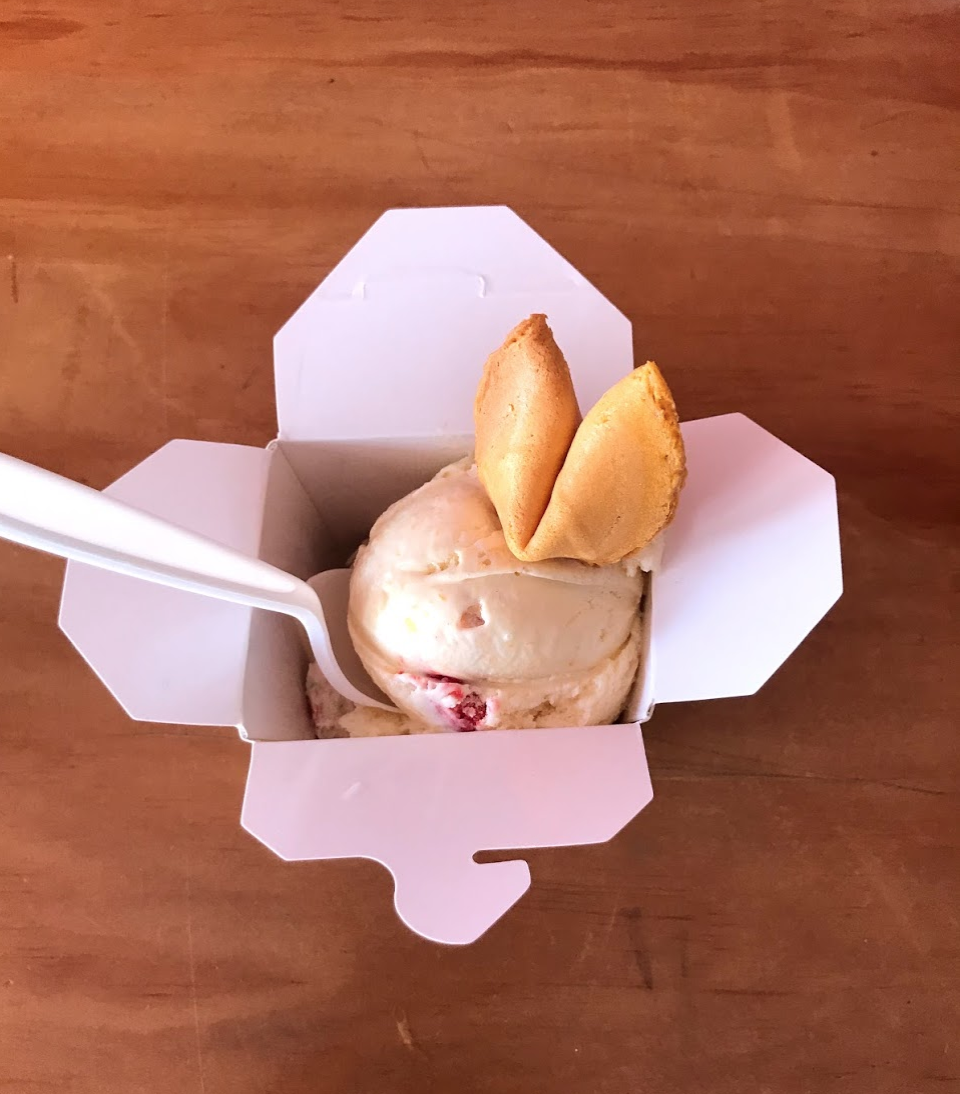 218 East Portland Street Ice cream at Melt is served in to-go Chinese cartons and topped with a fortune cookie. Samantha Pouls