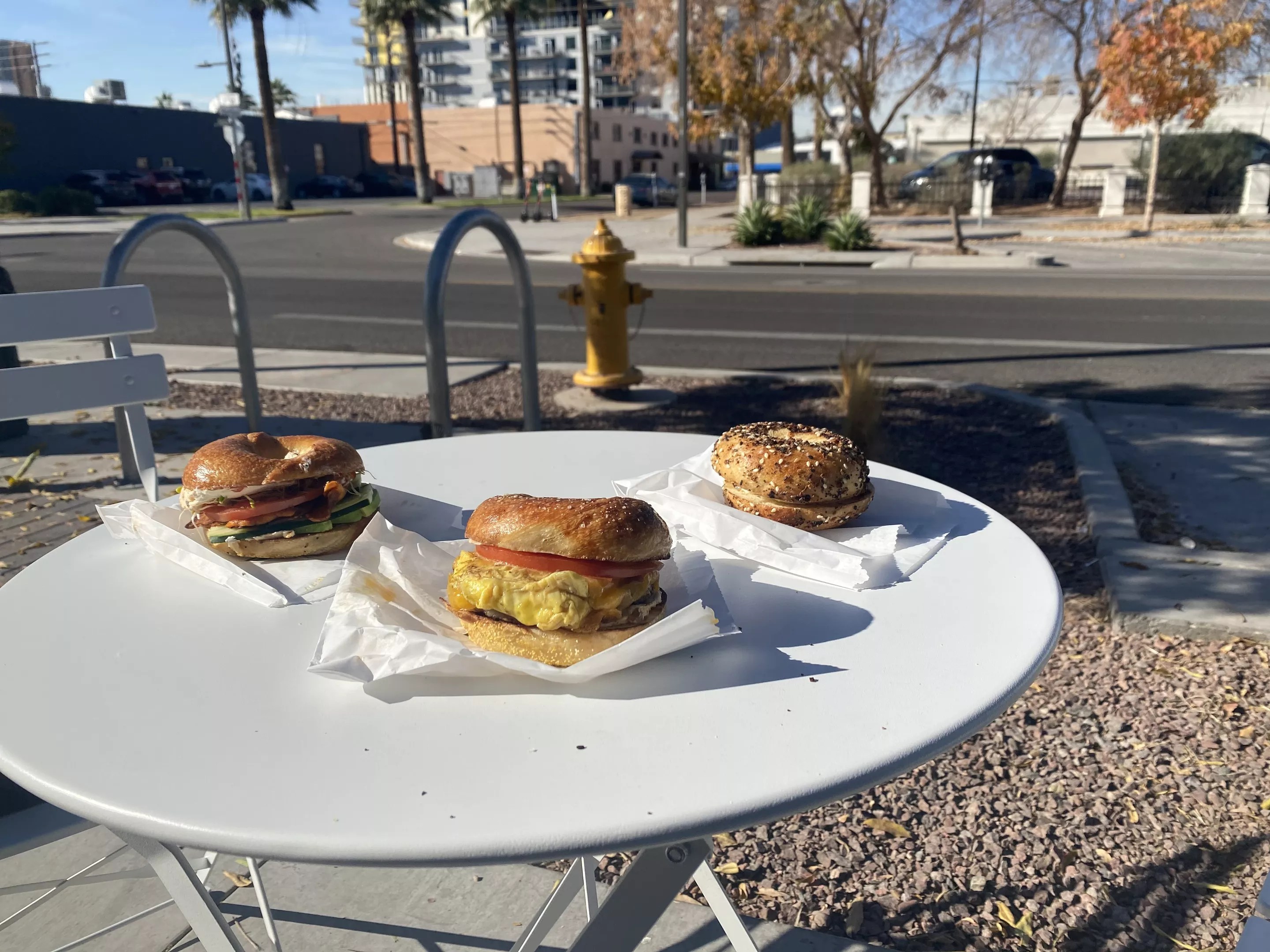 333 East Roosevelt Street The Yam and Cheese, Money Shot, and an everything bagel with cream cheese wait to be devoured. Natasha Yee