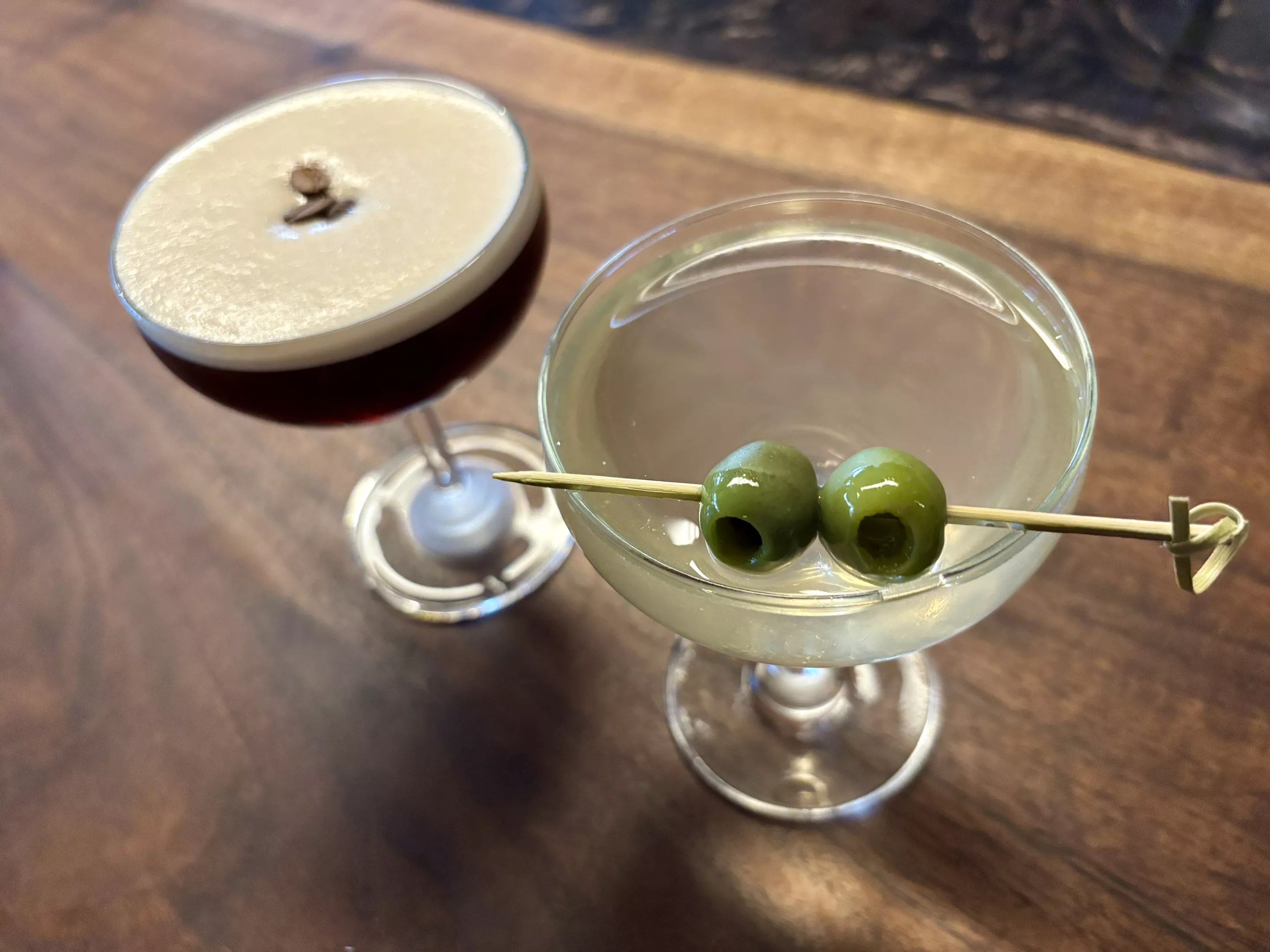 On a recent Wednesday night, the restaurant was buzzing, with the only available seats surrounding a large community table. We settled in, ordered two girl dinners, and our martinis – one dirty, one espresso – hit the table in minutes.