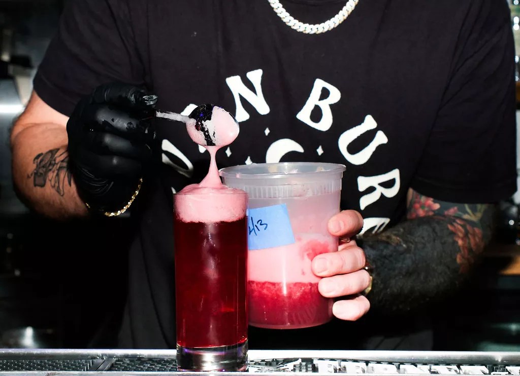 Saint Pasta’s cocktail menu gets playful with the Cherry Hill-Billy, which uses a house-infused cherry vodka, red Kool-Aid syrup and carbonated cherry foam to create a boozy Mountain Dew Code Red.