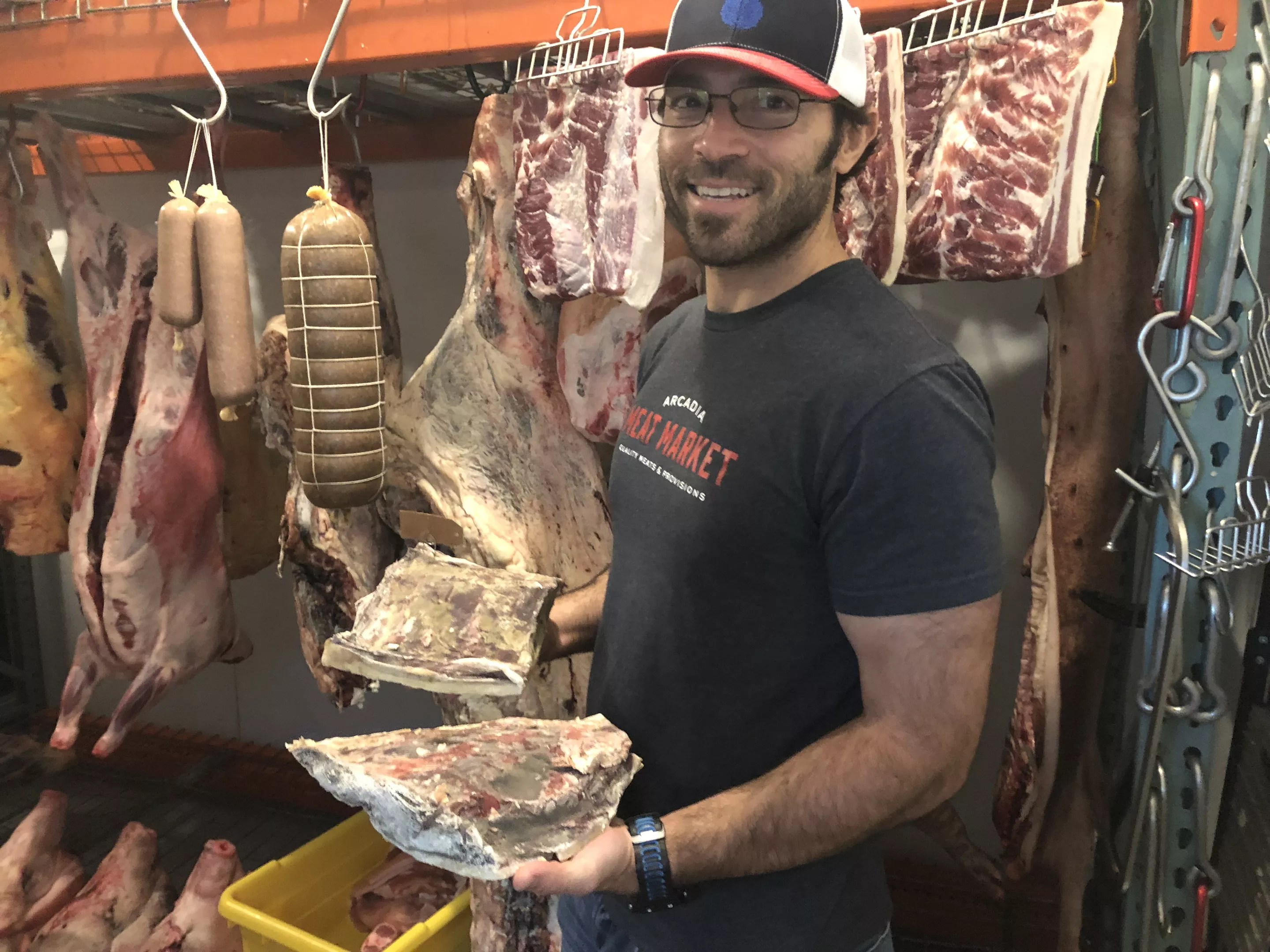 Arcadia Meat Market, in the middle stages of developing its dry-aged steak program, just cut into a few steaks aged for about 100 days. You can dry-age steak for 14 days or 21 days. You can dry-age steaks for 30 or 45 days. But once you get beyond 45 days, meat gets weird.