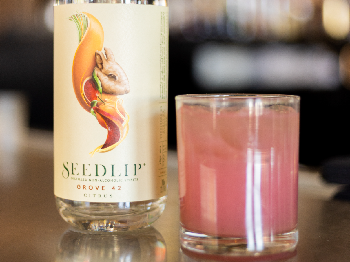 Ross Simon’s over-the-top, nearly overwhelming cocktail menu boasts a lineup of creative concoctions that has made Bitter & Twisted Cocktail Parlour legendary. But hidden within those 20 pages are 24 options for non-imbibers that use spirit replacements from A Cut Above and Lyre’s. Among them are the refreshing Rhubarb-Ba-Arandas with a punchy profile thanks to fresh hibiscus juice, rhubarb and strawberry sherbet, and the RUM DMC made with a zero-proof spirit alternative, lime, guava, grapefruit cinnamon syrup and finished with a passion fruit foam. A NA version of the bar’s most popular cocktail, the Pornstar Martini, is a concoction of passion fruit puree, zero-proof spirit alternative, house-made vanilla sugar and a sidecar of alcohol-removed moscato.