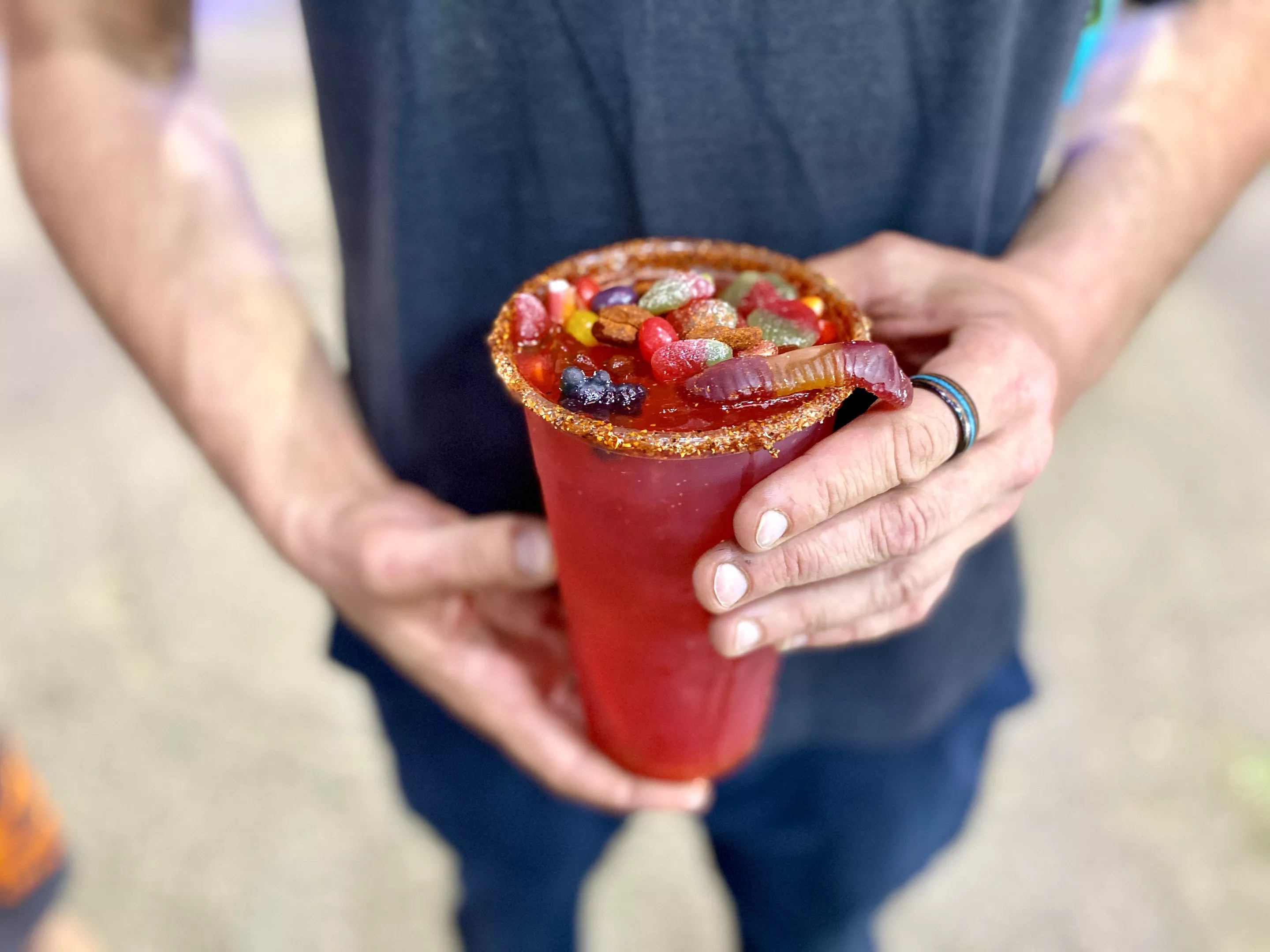 “Because I’ve been trained under Jody who’s in the fair business, [I know that] we have one shot to get you, so food better look and taste great,” Machelor says. Case in point: Chubs’ Crazy Kool-Aid is a tall drink of fun that’s rimmed with spicy tajin and brimming with colorful candies.