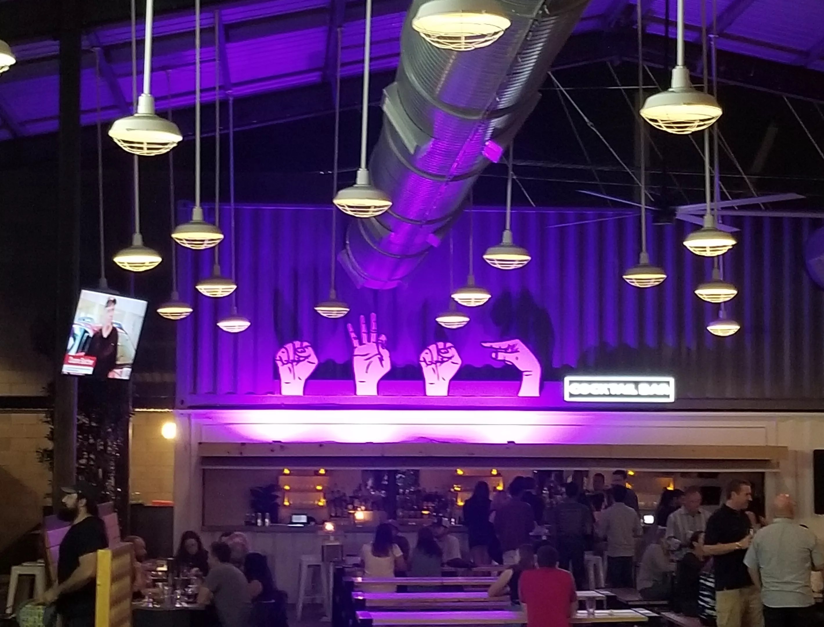 Heed the call of the purple light at So Far, So Good inside The Churchill.