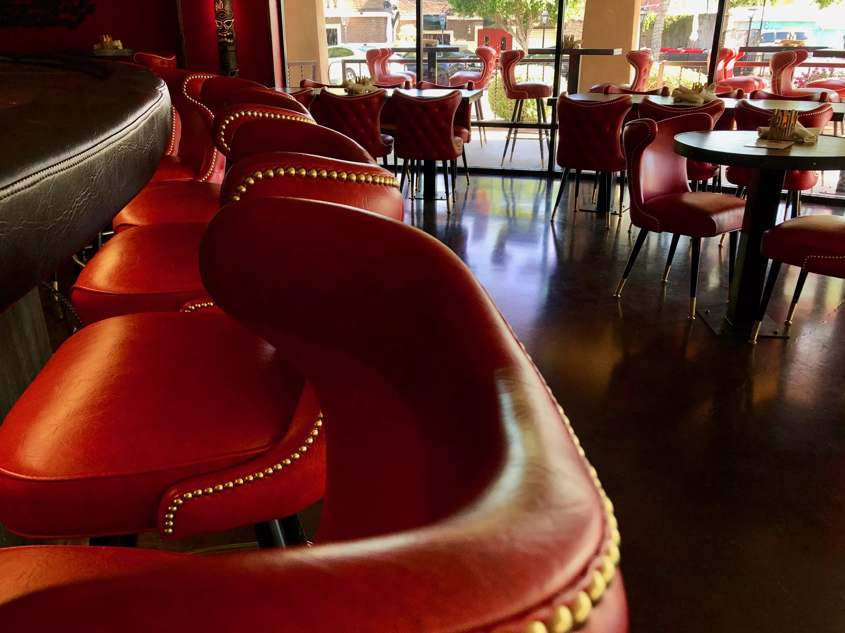The 4,600-square-foot restaurant seats 150 in the dining area, along with 50 spots on the patio once it’s not July. The inside is all dark red and darker wood, like a beach house meets a Red for Ed rally. There’s a giant Moai head behind the bar, along with some fun tiki mugs on display. But the rest is all sleek Scottsdale – not that it doesn’t look smart.