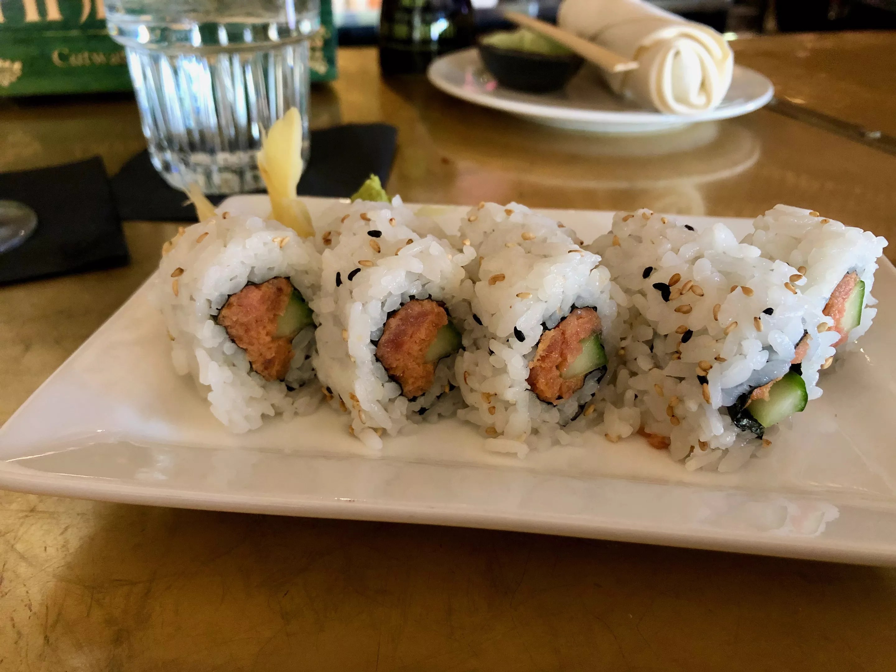 Give the sushi a skip. It’s grocery-store grade, which is to say edible, but not great – even if you order one promising the most zap like the spicy tuna.