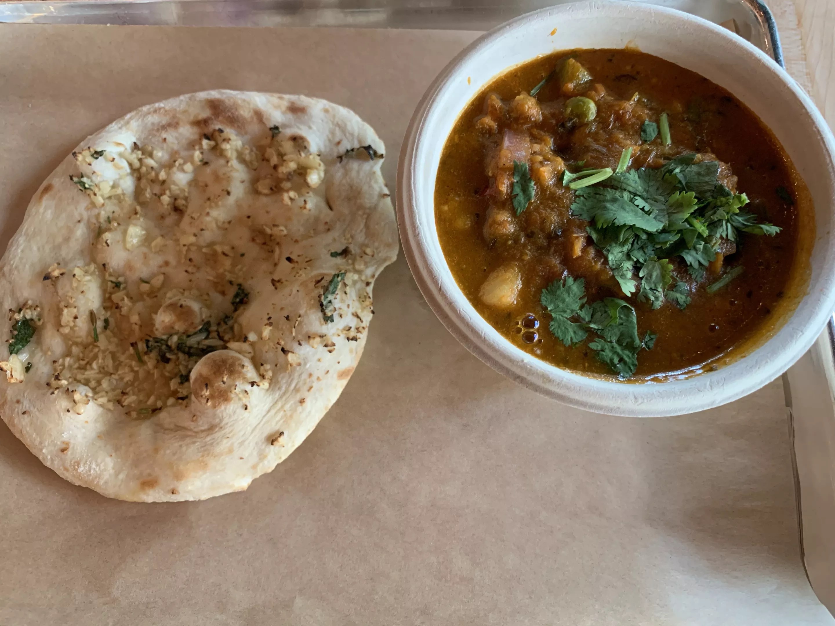First, pick a curry (anything from tikka masala to spinach masala to original curry. Second, choose a protein (chicken, paneer, shrimp, or lamb) and then add an option for regular, garlic, or cheese naan, or samosa. All curries are described, which eliminates the guesswork of deciphering hard-to-pronounce ingredients. Finally, those who have already developed a love of Indian food have the option of ramping up the spice level.