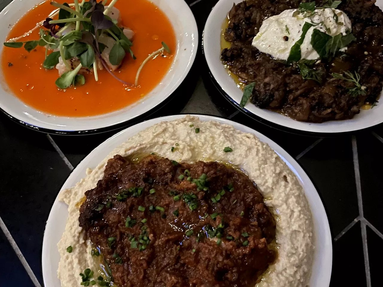 The menu draws from areas that are geographically parallel to Phoenix, stretching “somewhere between Maricopa and Morocco” with a variety of hot and cold dips, salads, small plates, and pastas.