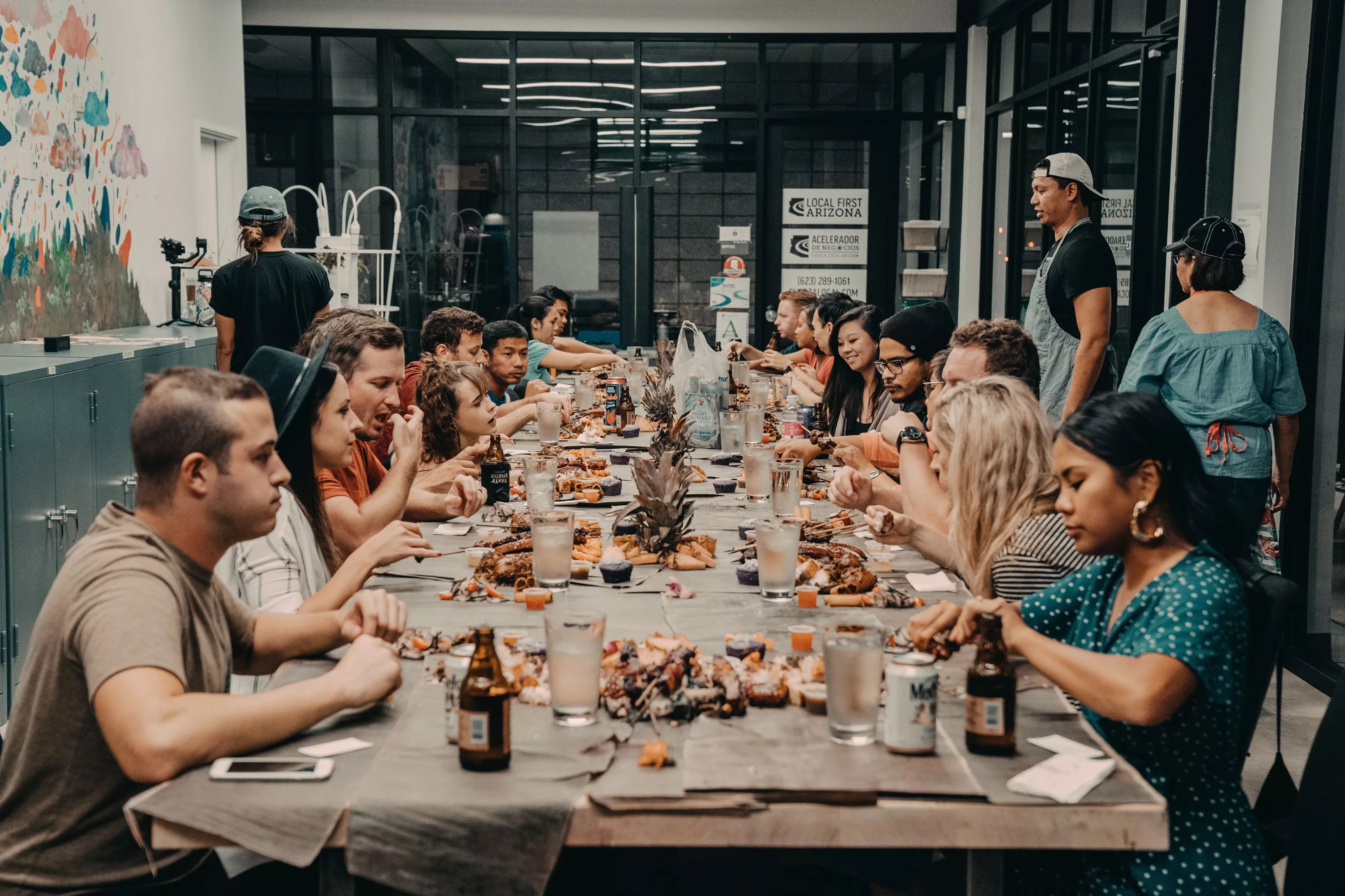 Diners in Mesa circled mounds of pork, chicken, shrimp, and rice piled on top of banana leaves, trying to frame the perfect photo for Instagram and other social media feeds. Then, they prepared to dig into a meal with no utensils or plates. This was all part of the Filipino pop-up Tayo and its first Kamayan dinner at the Fuerza Local Community Kitchen this past Saturday night, October 5.