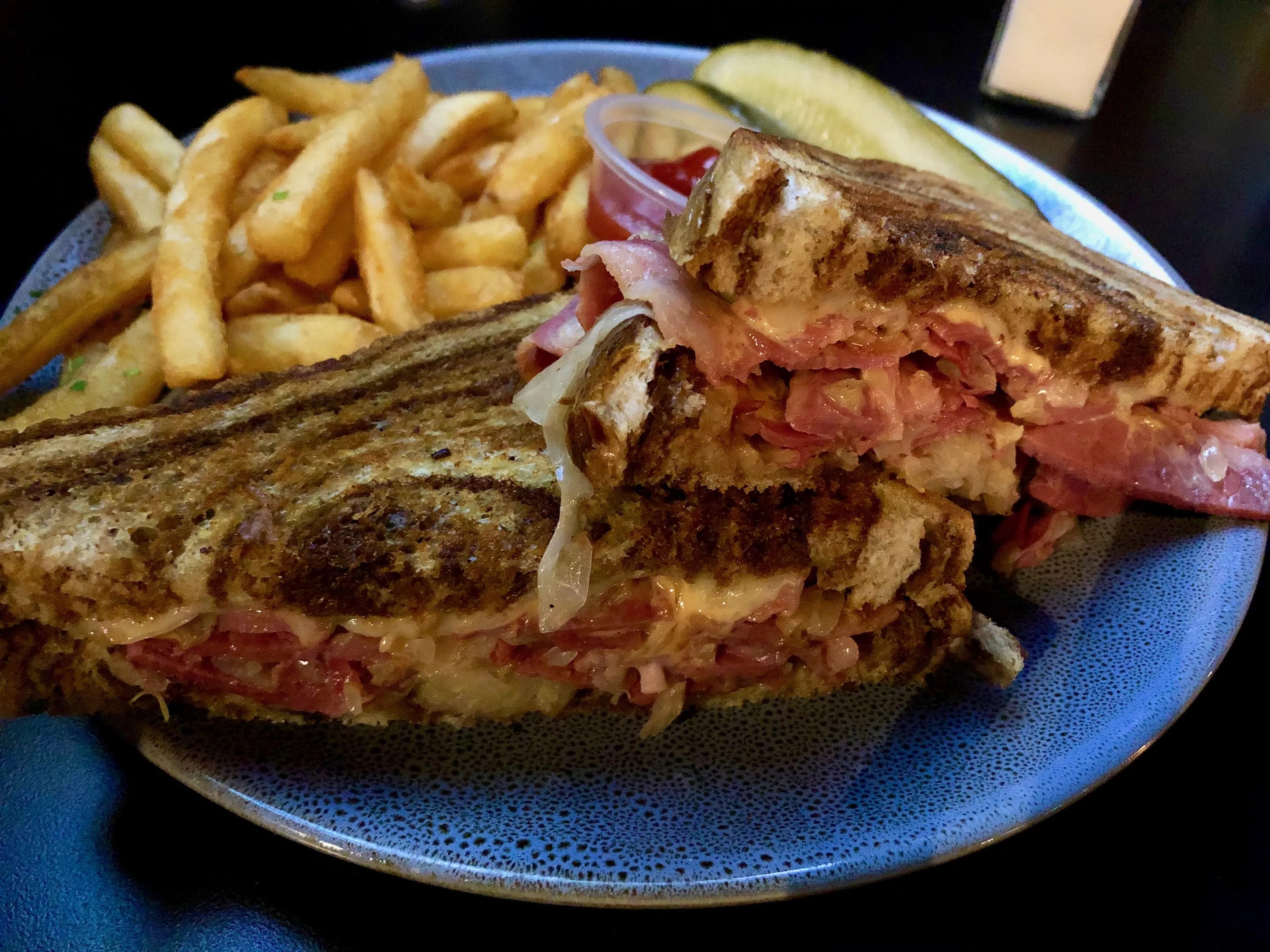 Sandwiches are also a very safe bet here. Both the Reuben on rye and the short rib grilled cheese handhelds were weighty, piping hot, and gooey with cheese and garlic butter. Each mouthful resulted in utter silence. No one was eager to continue their story while eating a sandwich like this.
