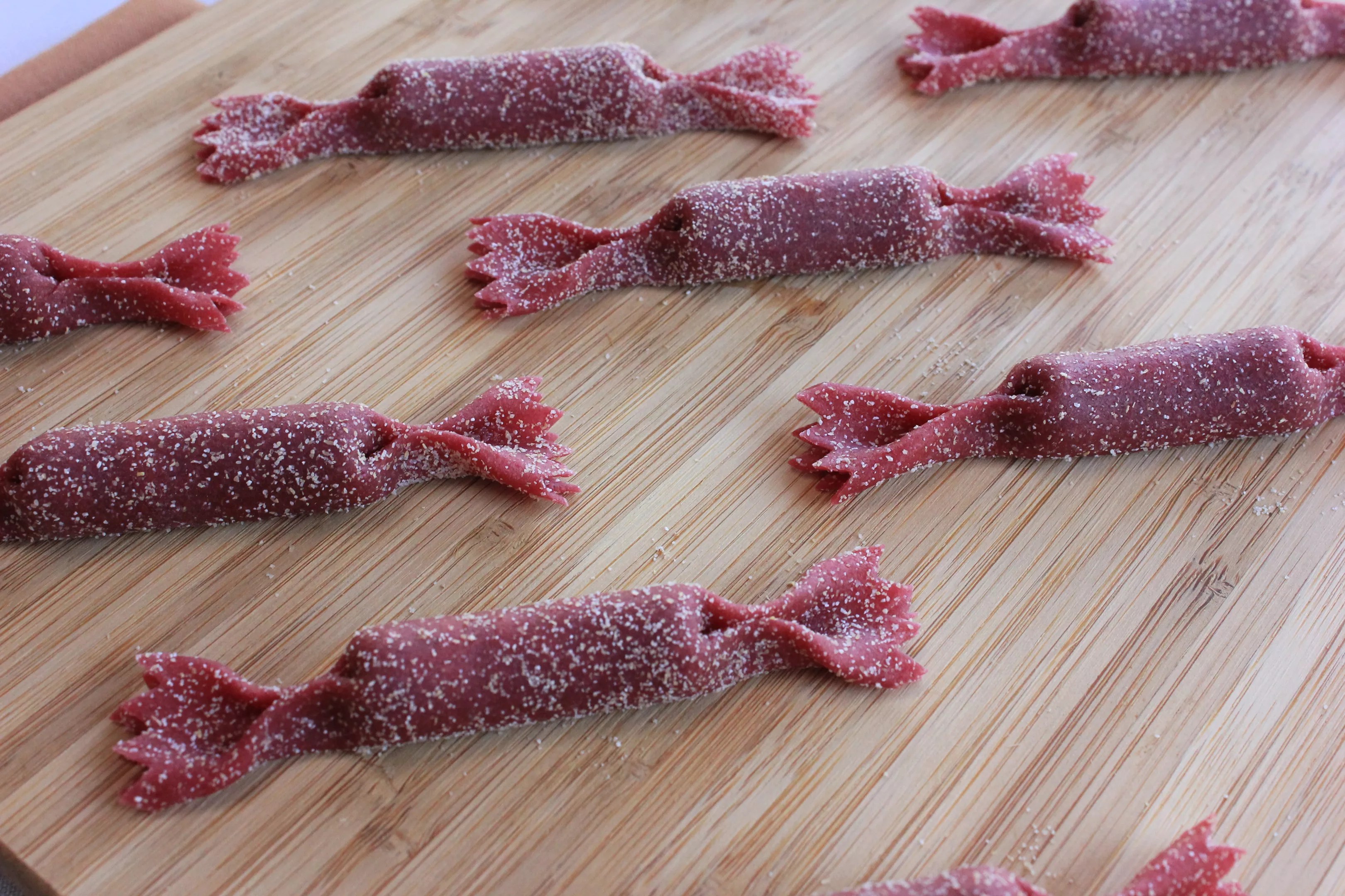 The world knows more than 600 pasta shapes. One of the cooler shapes is caramelle. It’s a stuffed pasta, like ravioli or agnolotti, but shaped like salt water taffy: long, skinny, with twists on the ends. The filling goes in the tubular middle.