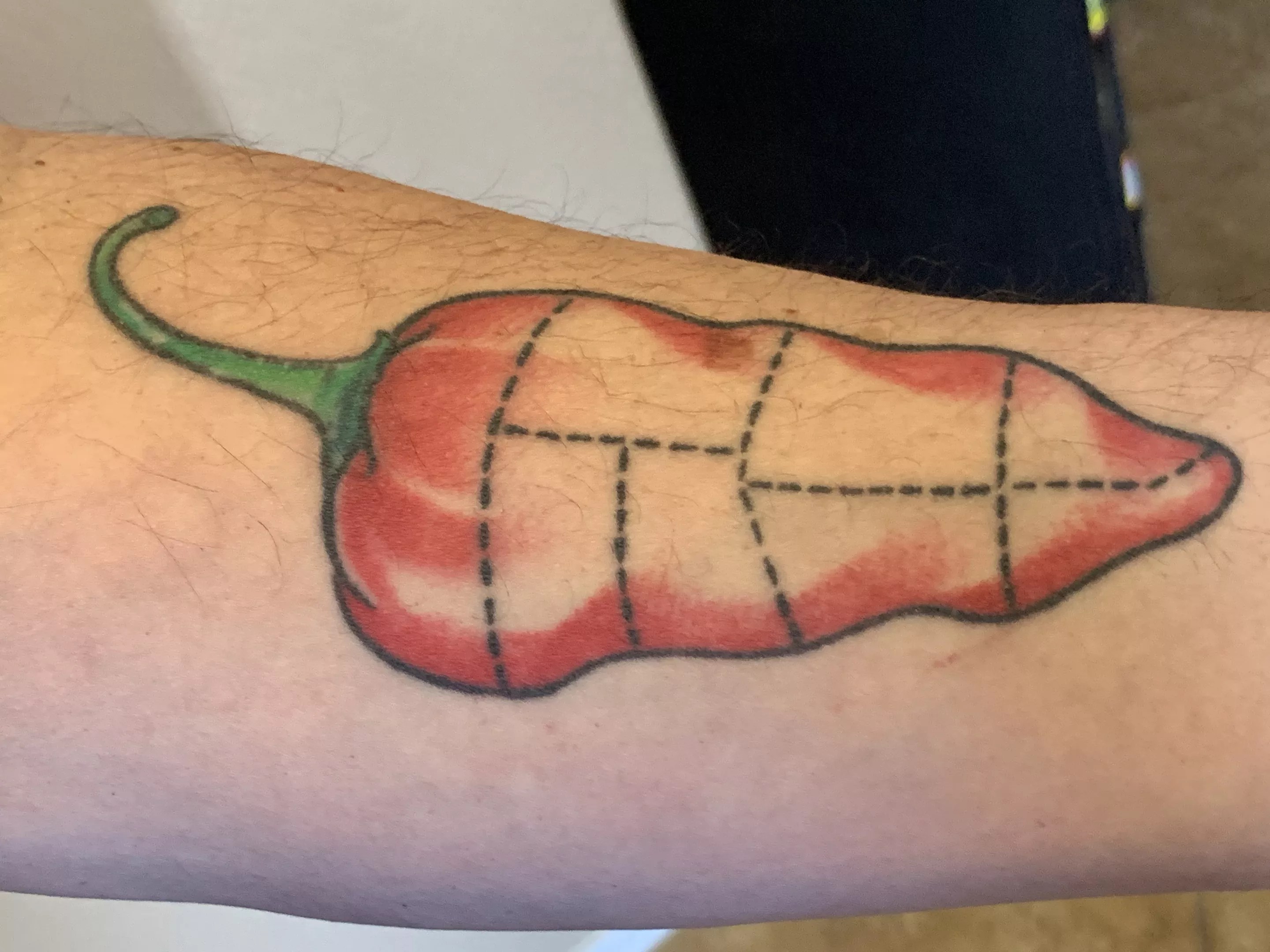 Clinco has a chile pepper tattooed on the inside of his arm.