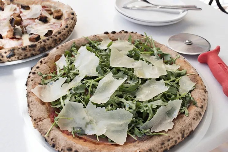 Fabio On Fire might sound a little like a steamy romance novel, but this unassuming strip mall restaurant is serious about making top-notch pizza. It’s the first brick-and-mortar space from Italian-born chef-owner Fabio Ceschetti, whose mobile, wood-fired pizza oven has become a fixture at private events and farmer’s markets. Antipasti highlights include the bruschetta moderna – thick-cut slices of ciabatta Pugliese layered with prosciutto, mascarpone, and hearty flakes of shaved parmigiana. There’s a small pasta menu, which includes homemade gnocchi in a classic basil pesto sauce. But you probably came for the pizza. Highlights include the Capricciosia, layered with prosciutto and artichoke hearts, and brimming with the subtly marvelous flavors of San Marzano tomatoes and extra virgin olive oil. The Tarantina pizza marries sweet caramelized onions with spicy salami and the sublime funk of gorgonzola cheese. And the Diavola, with its exquisitely simple combo of tomato sauce, mozzarella, and spicy salami, is irresistible.