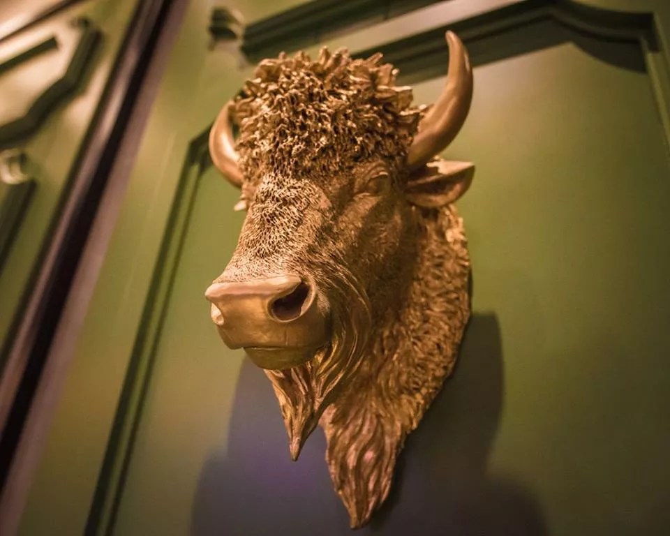 The Interior: Handcut picks up where former Fox Restaurant Concepts eatery (and Fashion Square tenant) Modern Steak left off. Wild colors clash nicely with crazy patterns and funky lighting fixtures (e.g. caged chandeliers, Edison lightbulb trees, and even a wall of old-timey street lamps) illuminate the spacious spot. The cattle theme is heavy-handed – we’re not sure all women will appreciate being identified as a “cow” (as opposed to a bull) when choosing their restroom, but the steer heads that speckle the landscape certainly drive home the point that these guys love their beef.