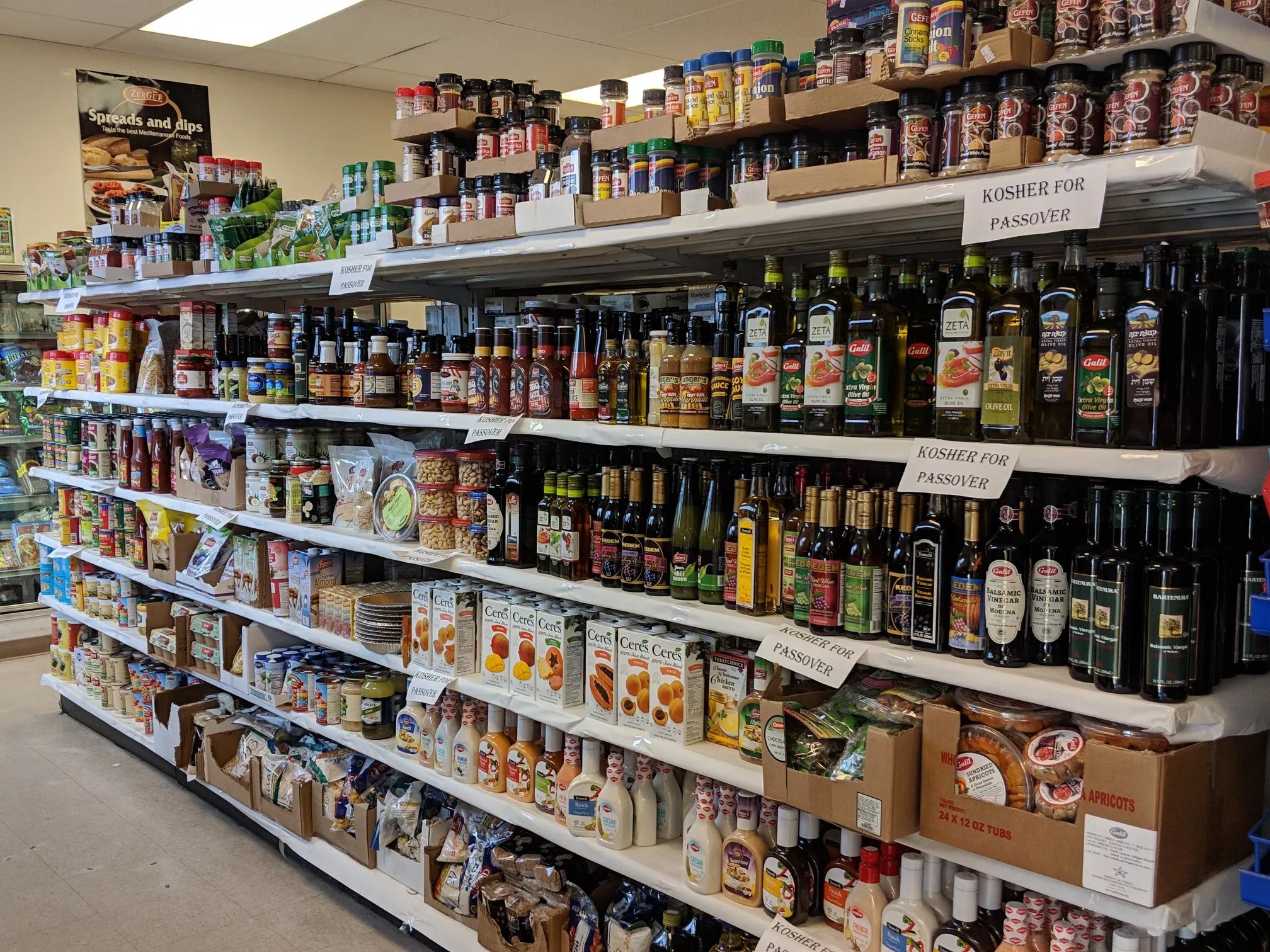 Shelves are stocked with all the Passover treats and products you can think of at Imperial Market & Deli.