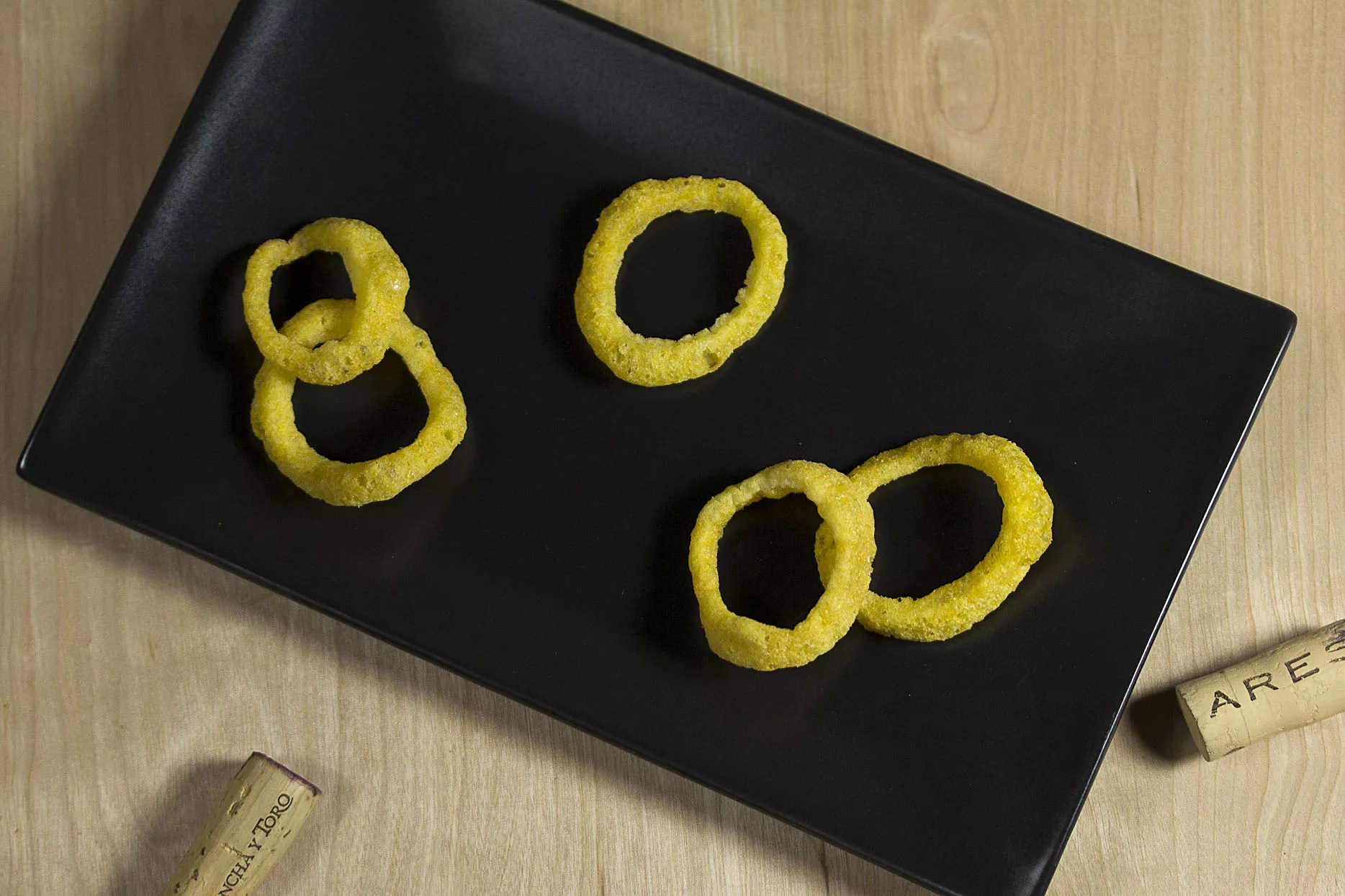 They are gold, for starters. They are crunchy. You can wear the little ones like rings or the big ones as bracelets or earrings. Rarely is a snack food so versatile.