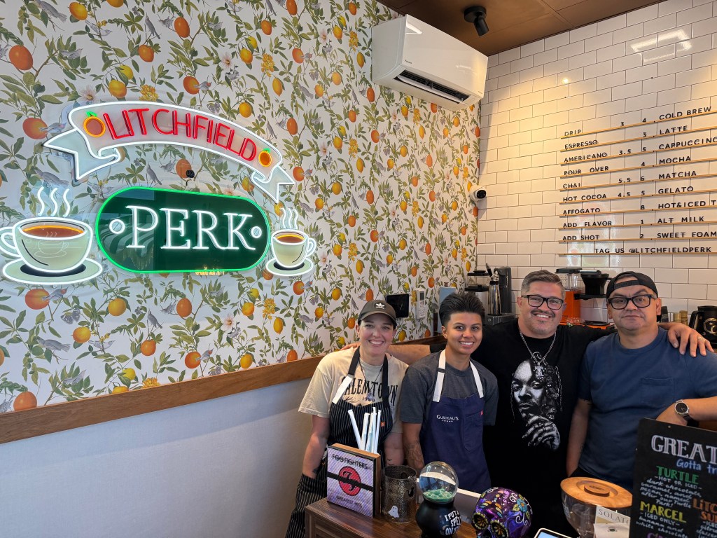 In addition to coffee, Litchfield Perk serves gelato and seasonal drinks. Rogel recommends The Marcel (named after Ross’s monkey), a chocolate-banana latte served hot or iced. Other seasonal drinks include the Cinnamon Ghost Crunch, The Brewha and The Pumpkin King, a pumpkin caramel chai with espresso and pumpkin caramel cold foam.