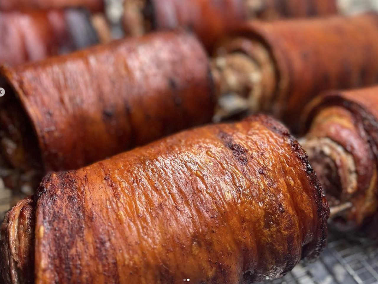 Rolled and cooked in a rotisserie oven, Jeepney Guy’s version of lechon puts a spin on the traditional dish.