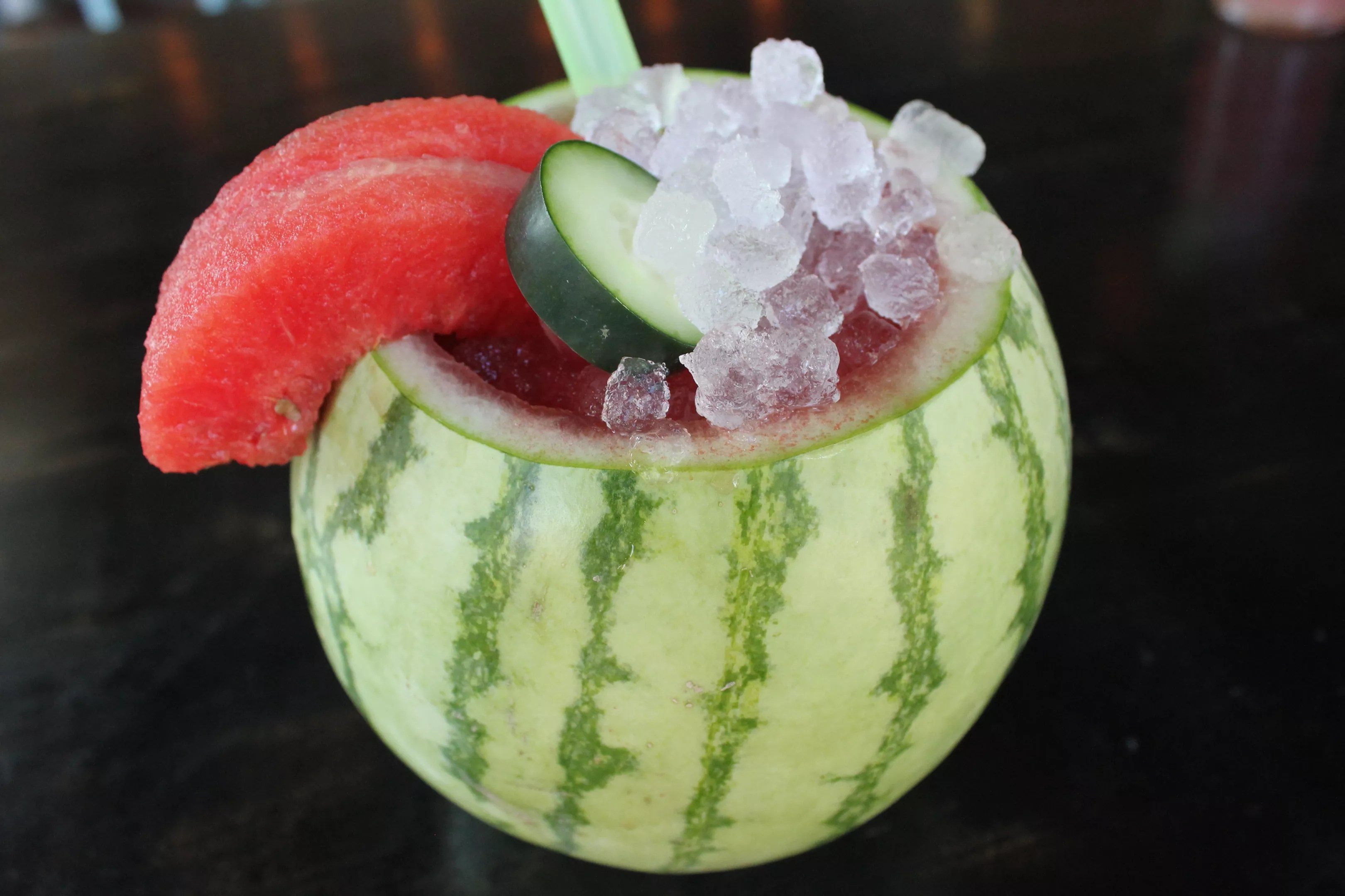 A machine sourced from Malaysia cored this watermelon, a vessel for a juicy drink