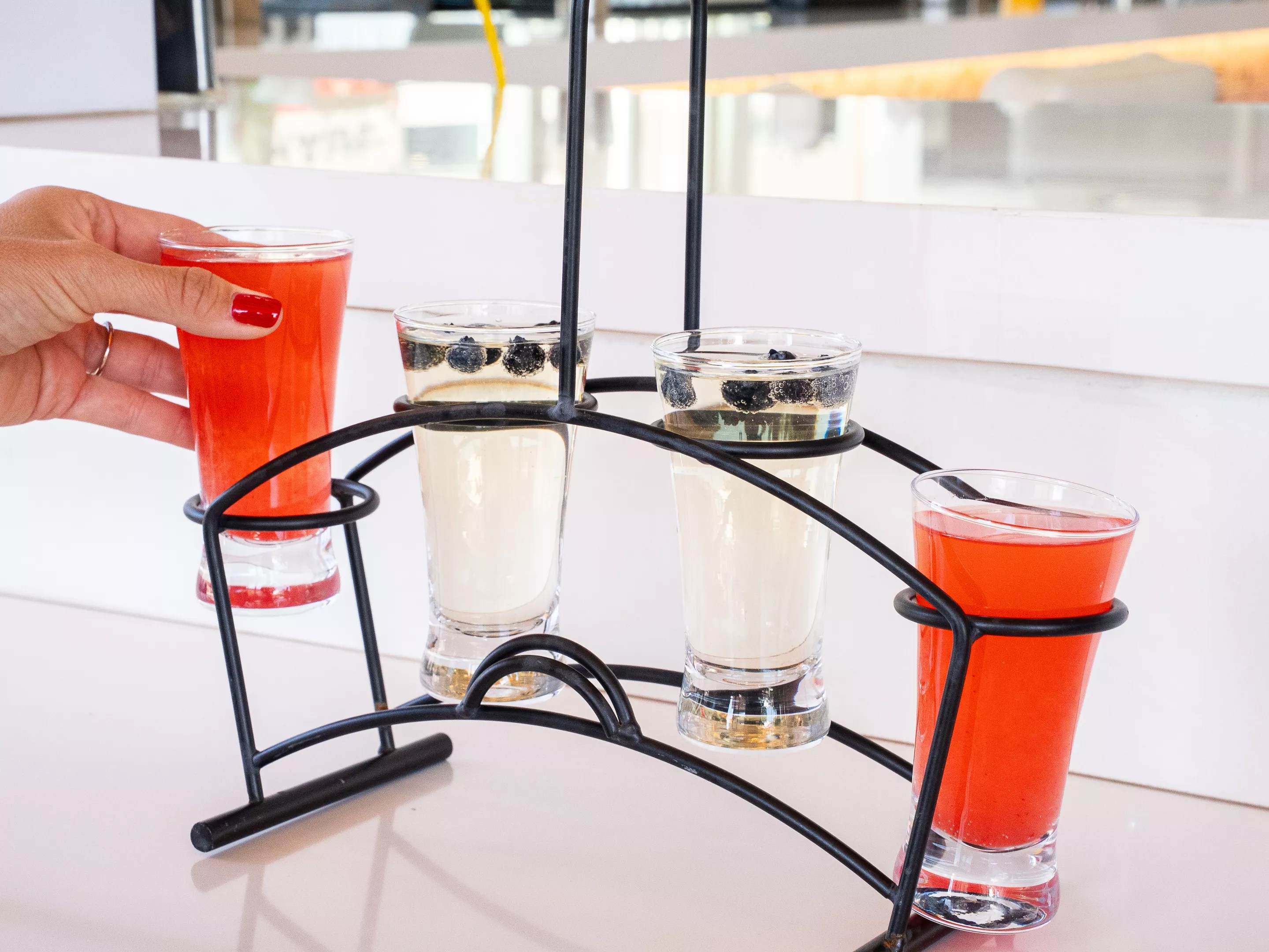7320 E. Indian Plaza, Scottsdale Casa Amigos is bringing the stars and stripes to the bar scene with specials offered Friday through Sunday. Get $4 Lady Liberita draft margaritas and $4 Star Spangled Banner shots made with blue Curaçao and Deep Eddy Lemon. Also, military personnel, veterans and first responders with valid ID will receive 25% off their tab. The patriotic flight featuring festive strawberry and fresh blueberry mimosas at Over Easy. Courtesy of Over Easy