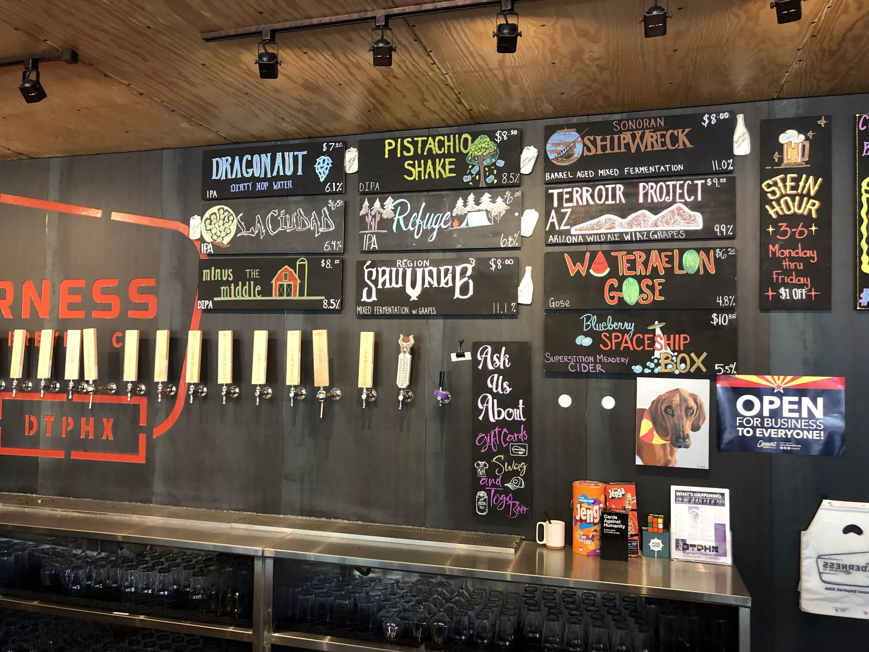The tap list at Arizona Wilderness in downtown Phoenix, Christmas tree not pictured.