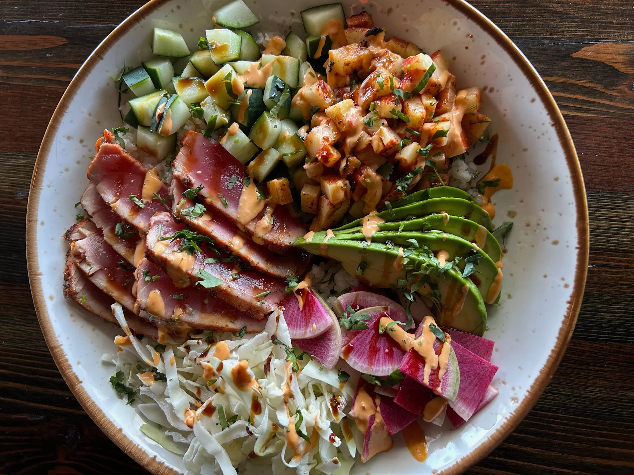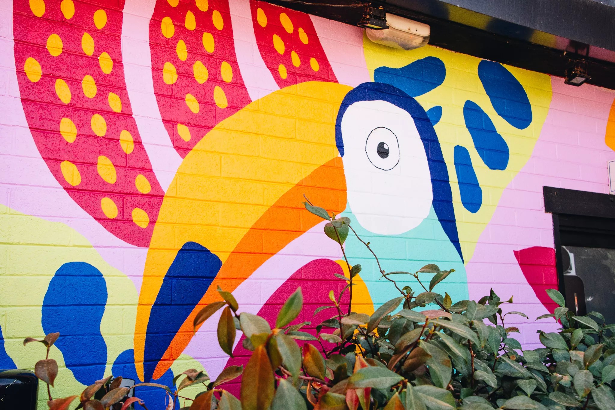Wall-spanning murals of animals have drenched the formerly mid-century modern-leaning indoor-outdoor space in bright colors. Lane describes Funky Frida’s as part of a “side hustle” of new restaurants that has allowed his team to be more creative.