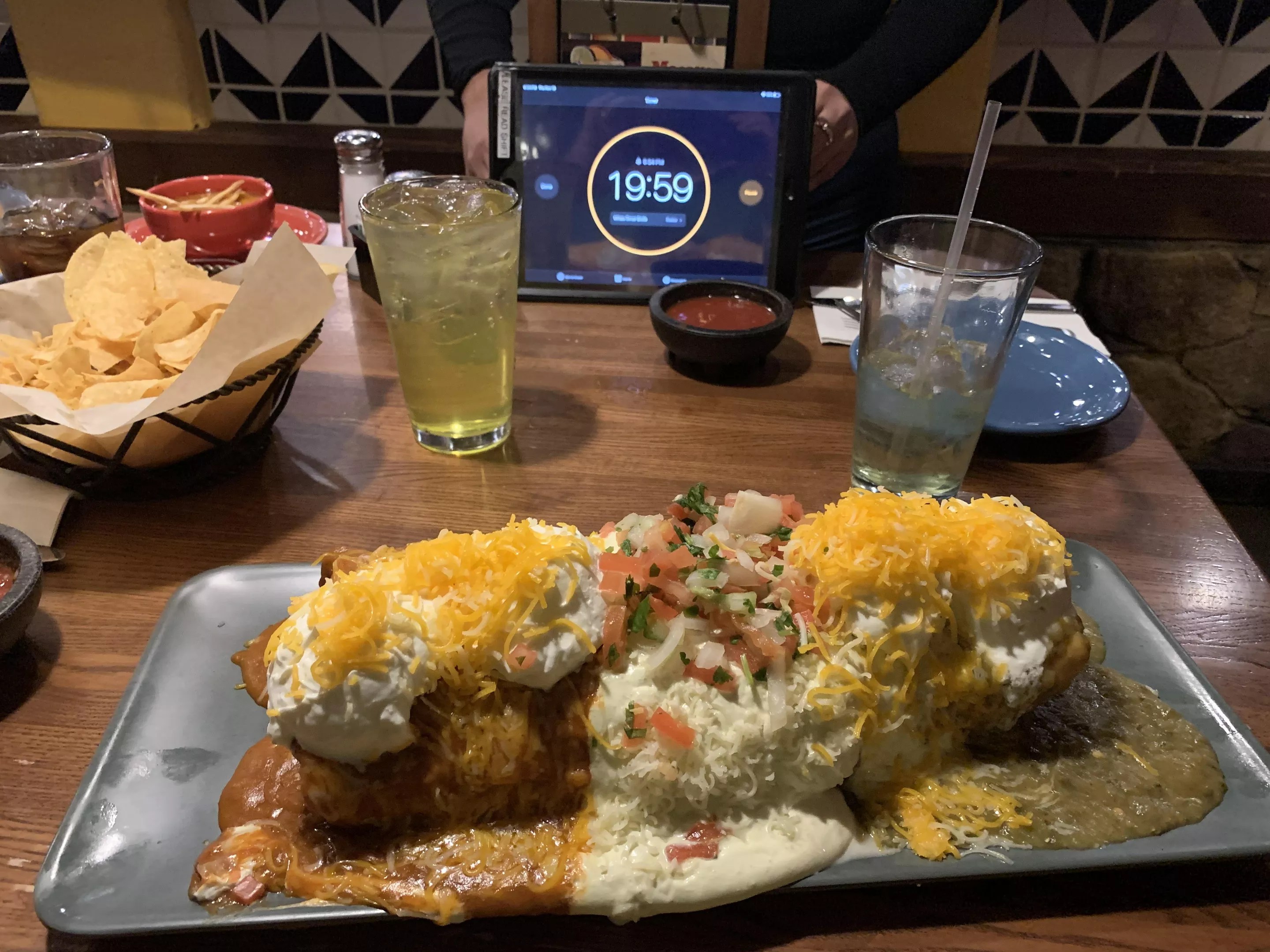 An iPad was placed on our table and 20 minutes was put on the timer. The staff left and I dug in. Despite its massive size, it was crispy, fresh and seasoned just right. I went with the carnitas because I thought it would be less filling? Keep in mind, I had no aspirations of downing this leviathan.