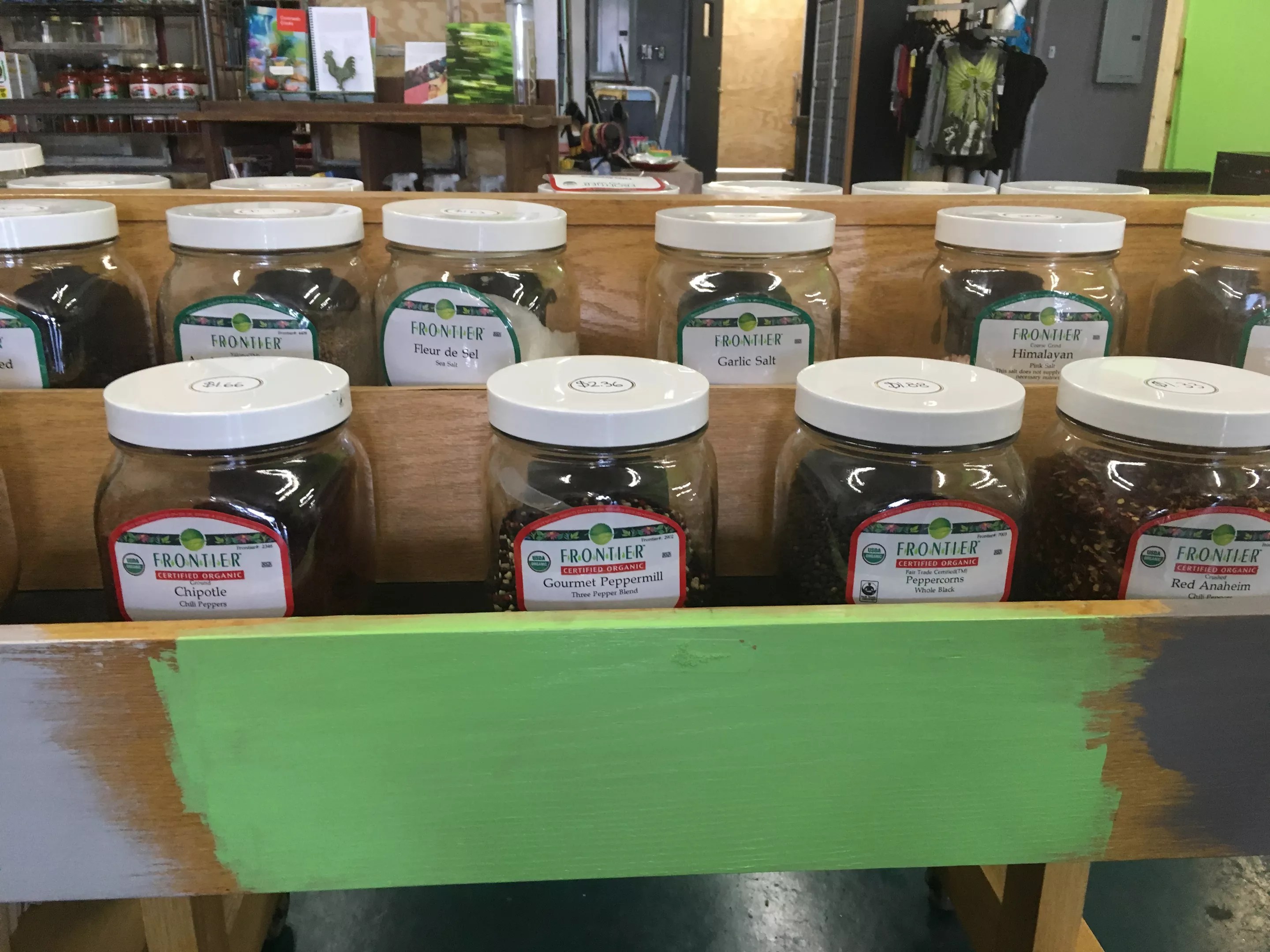 In addition to selling convenience items, dry goods, and spices, Chelsea’s small, organic grocery shop offers local, organic produce and bulk goods for online preorder and in-store pickup each week. Organic, grass-fed meats, free-range and organic chicken, and eggs will soon be offered as well on a monthly basis.