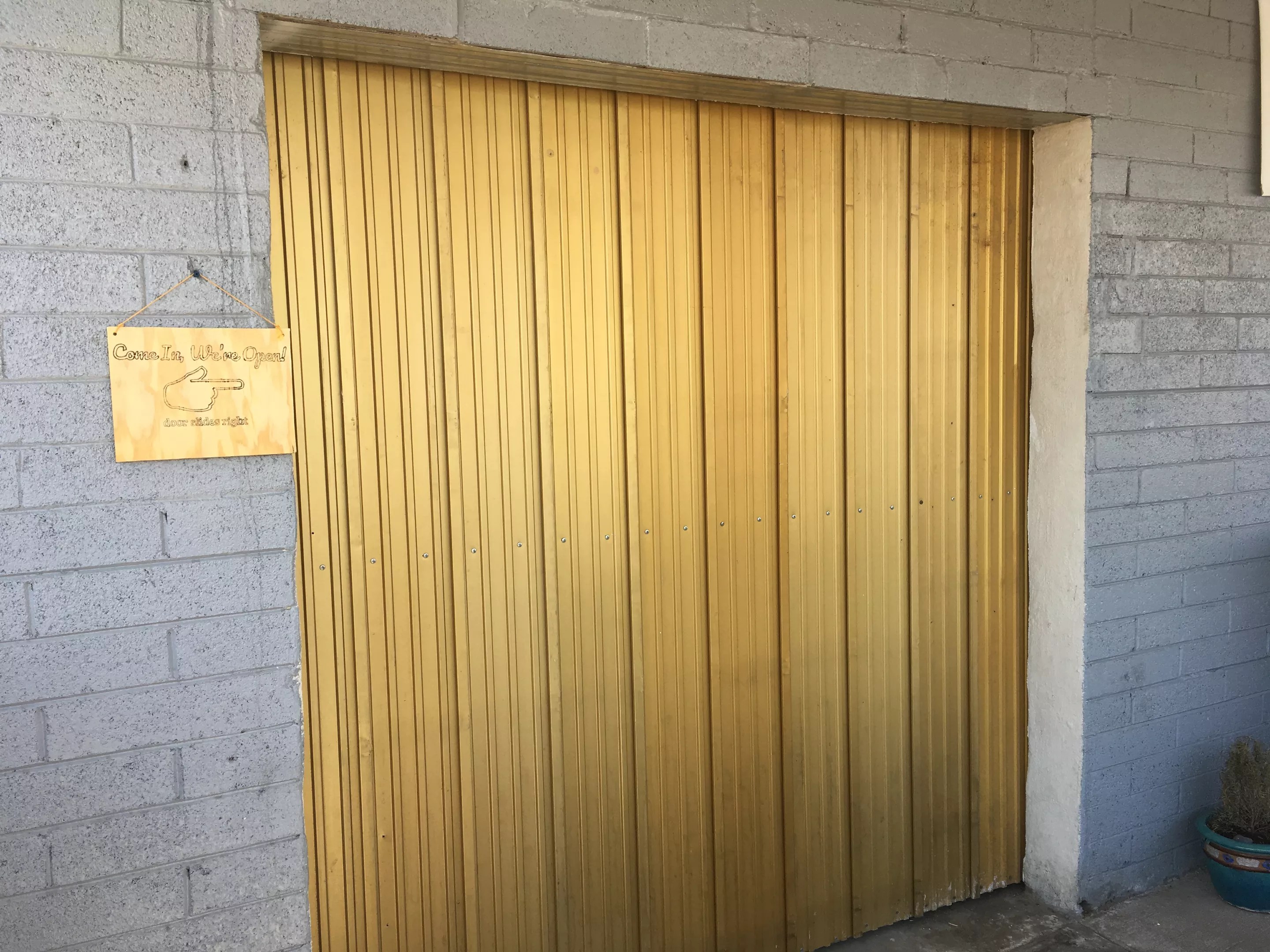 The market is a little hard to find if you don’t know what you are looking for, as signage out front is sparse. The Aqua Night Club is a good landmark, and the market has a large parking lot just behind the store and club. To get inside from the back lot, you have to read for clues. A small sign gives instructions for opening the sliding barn door, which, at first glance, makes it look like the shop is closed.