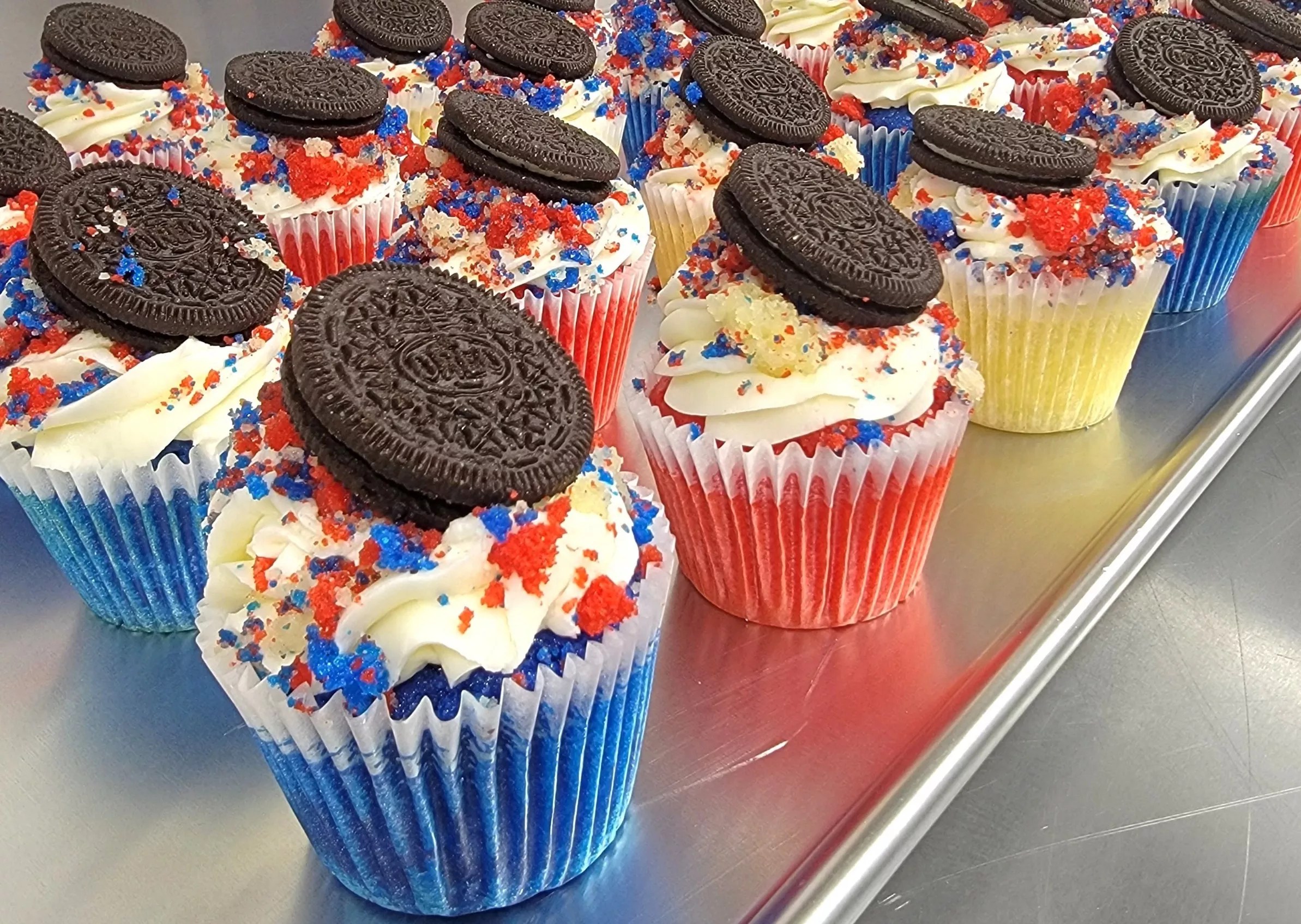 Red Velvet Bakery plans to serve holiday-themed treats like these red, white and blue cupcakes that will be sold over Labor Day weekend.