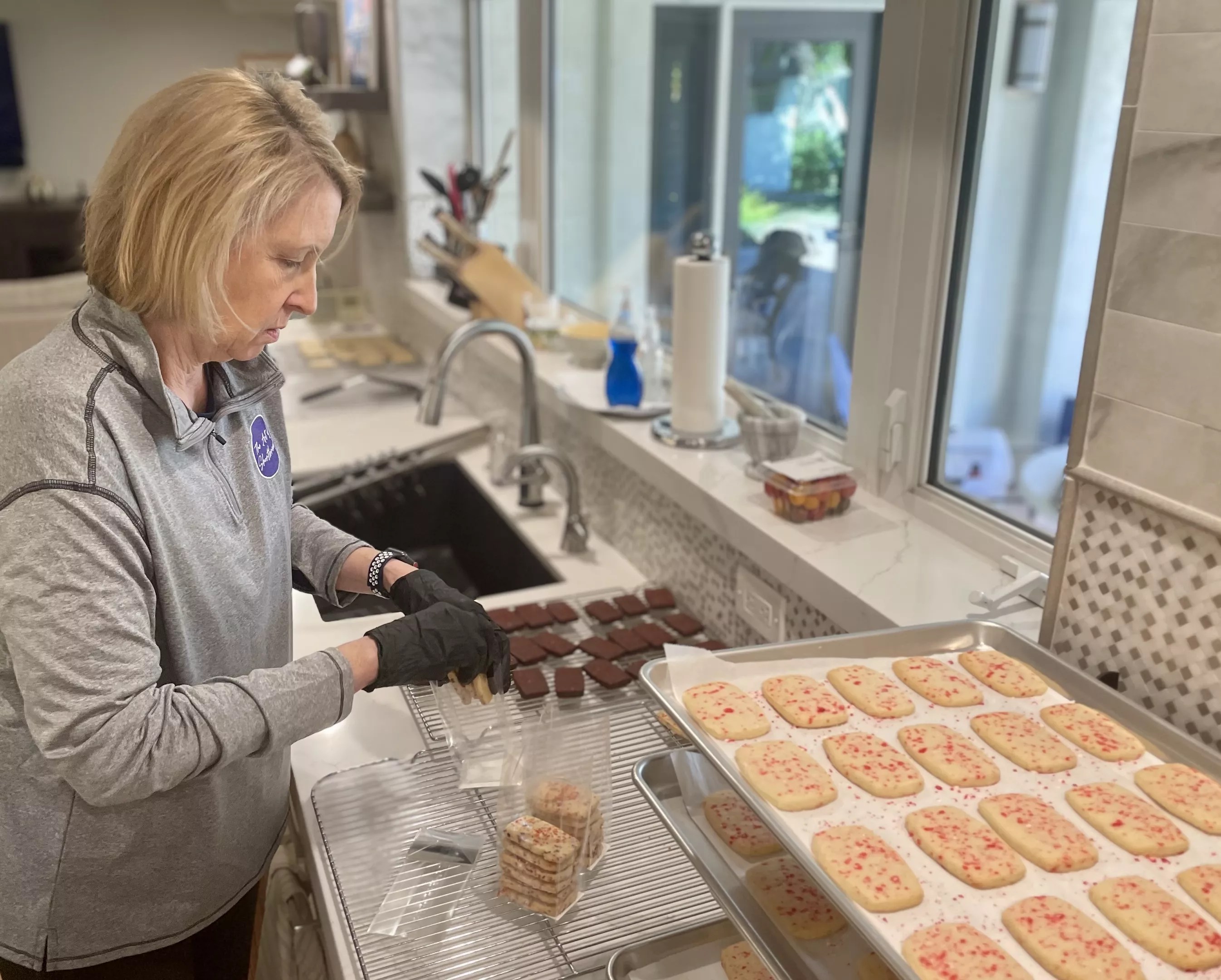 Kathy Rowland packages cookies in her kitchen. The Art of Shortbread sells its offerings in four stores around Phoenix and Scottsdale, as well as online.