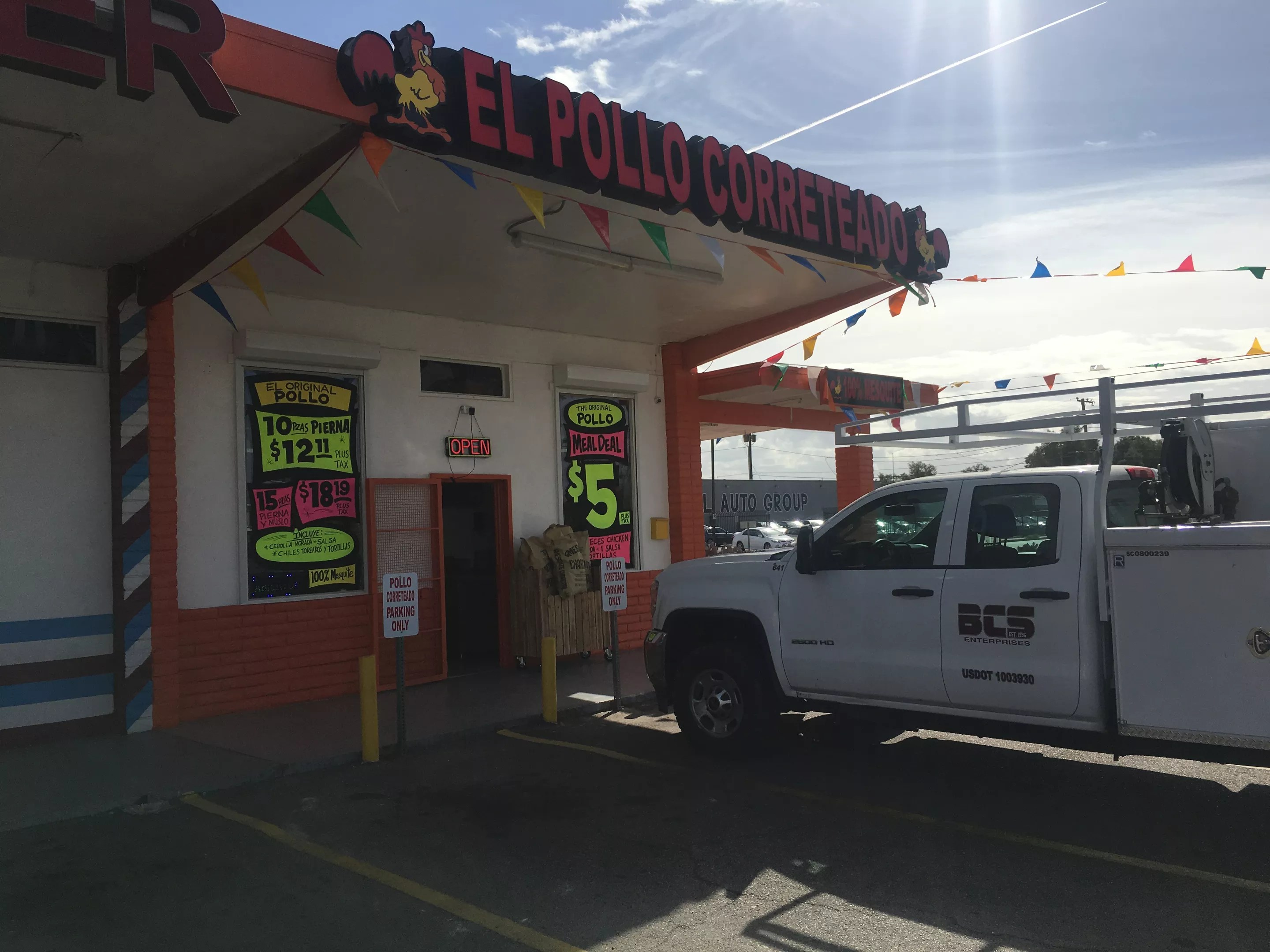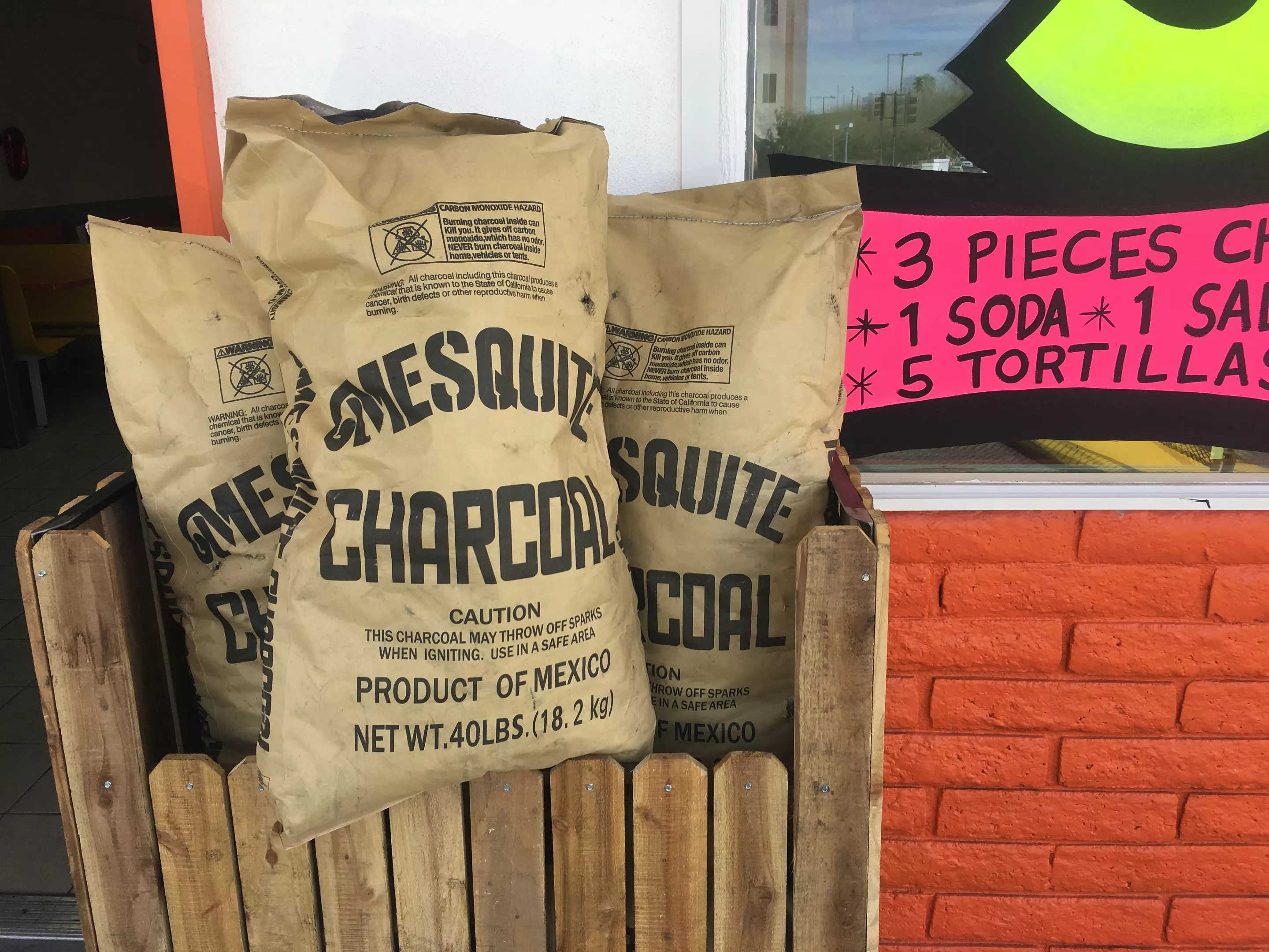 I pass El Pollo Correteado on the northeast corner of Jefferson and 16th streets on my way home from work. “100% mesquite,” a yellow sign says. “Meal Deal $5,” advertises text near a window. “Open,” a sign above the entrance blinks. The building features a pair of useless overhangs that make it look like it once housed a gas station or car repair shop. From the street, you can glimpse sacks of mesquite charcoal piled by the door. I always wonder about the place, and make for the freeway.
