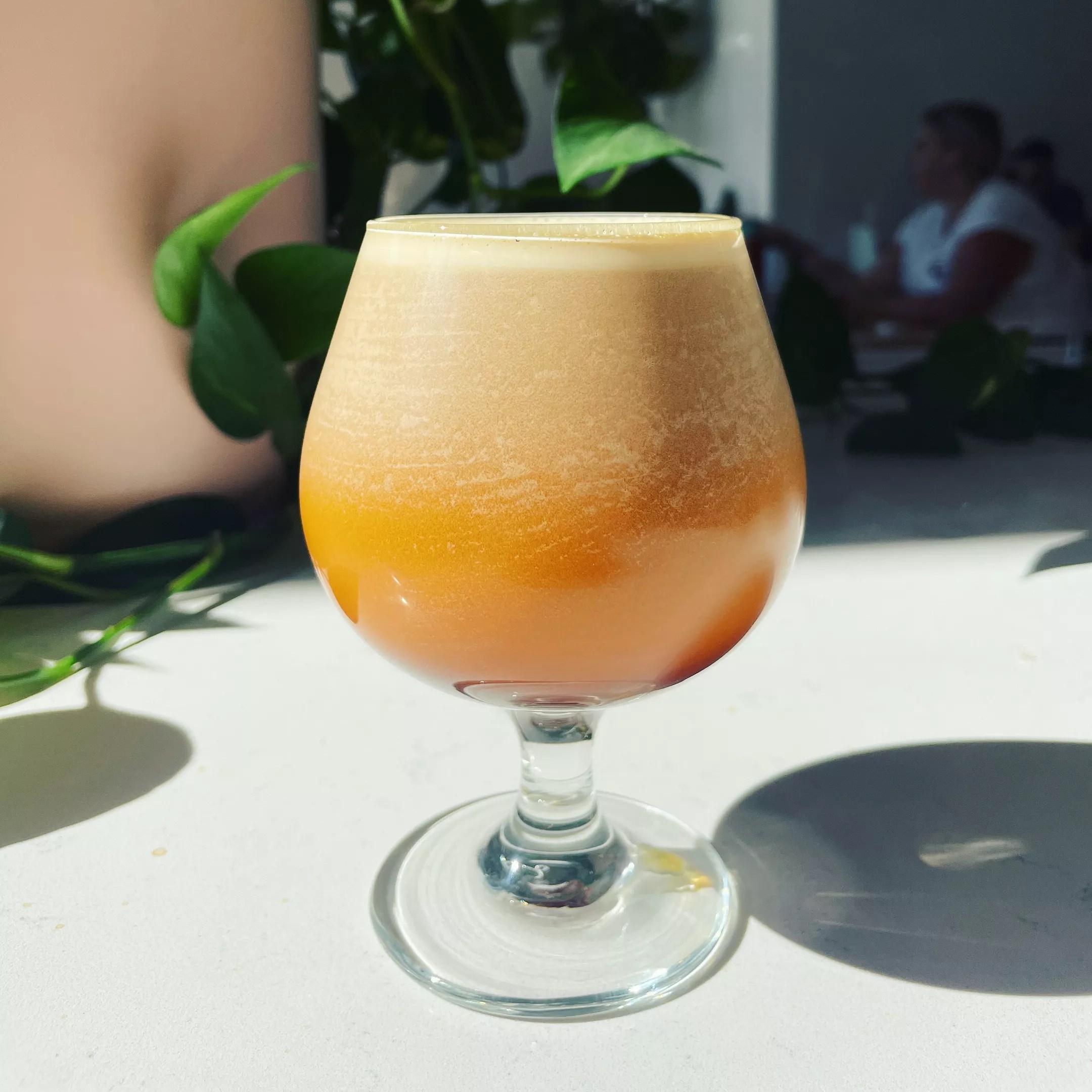 Inside, Moxie is roomier than it looks from the street, with a variety of seating arrangements – square tables for two, longer study-friendly tables, a row of high chairs overlooking 16th Street, plus a little patio out front with a walk-up window – high ceilings, and lots of natural light. The bestselling drink so far, Heltzel says, is the New Orleans-style iced coffee: cold brew with chicory, house-made vanilla, and topped with cream. There’s also a specialty drinks menu with items like a prickly pear matcha lemonade. Moxie carries a variety of local treats, too, including pop tarts from Süss Pastries.