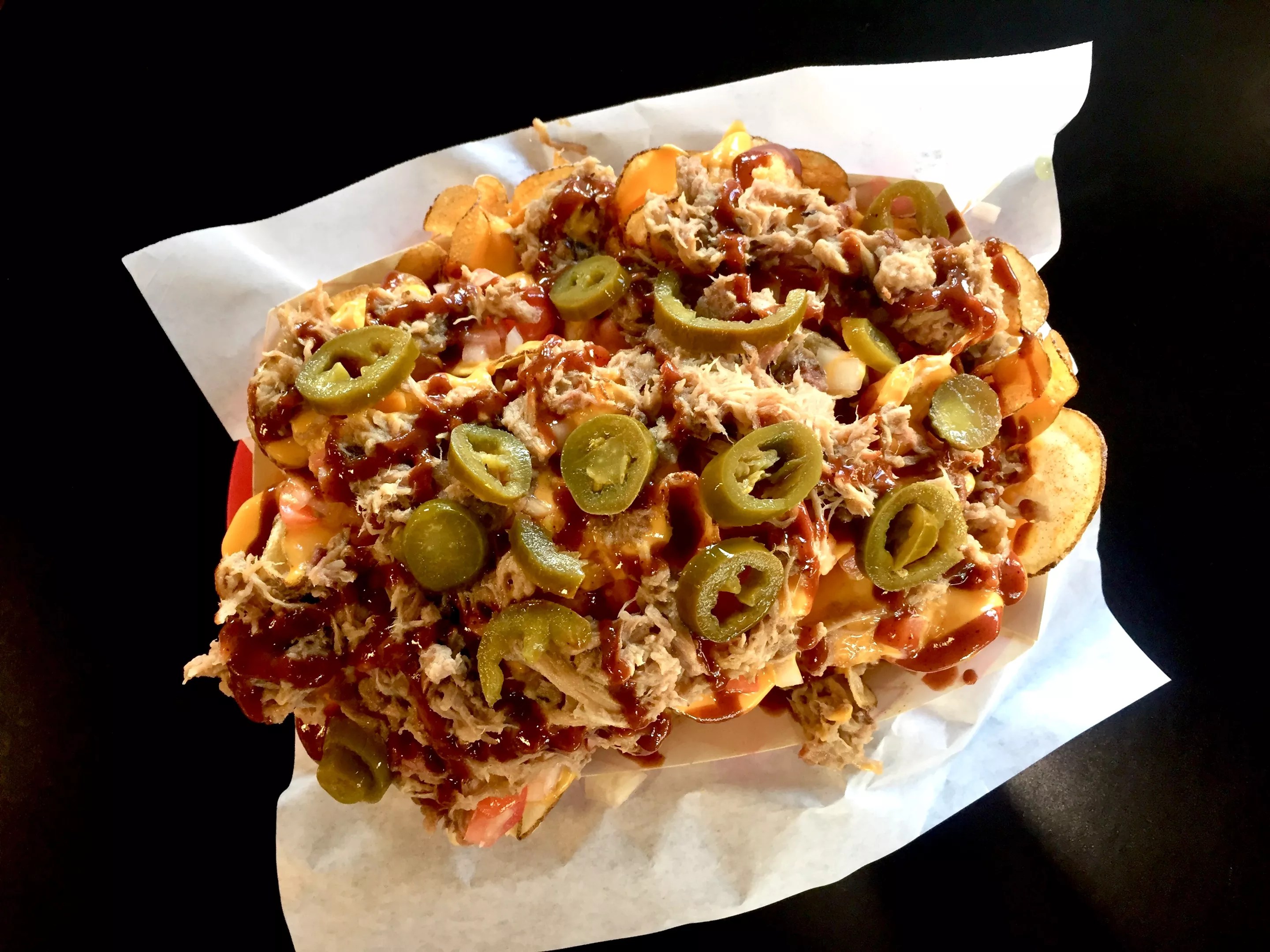Multiple locations Piled high nachos at Tom’s BBQ feature their famous pulled pork. Allison Young