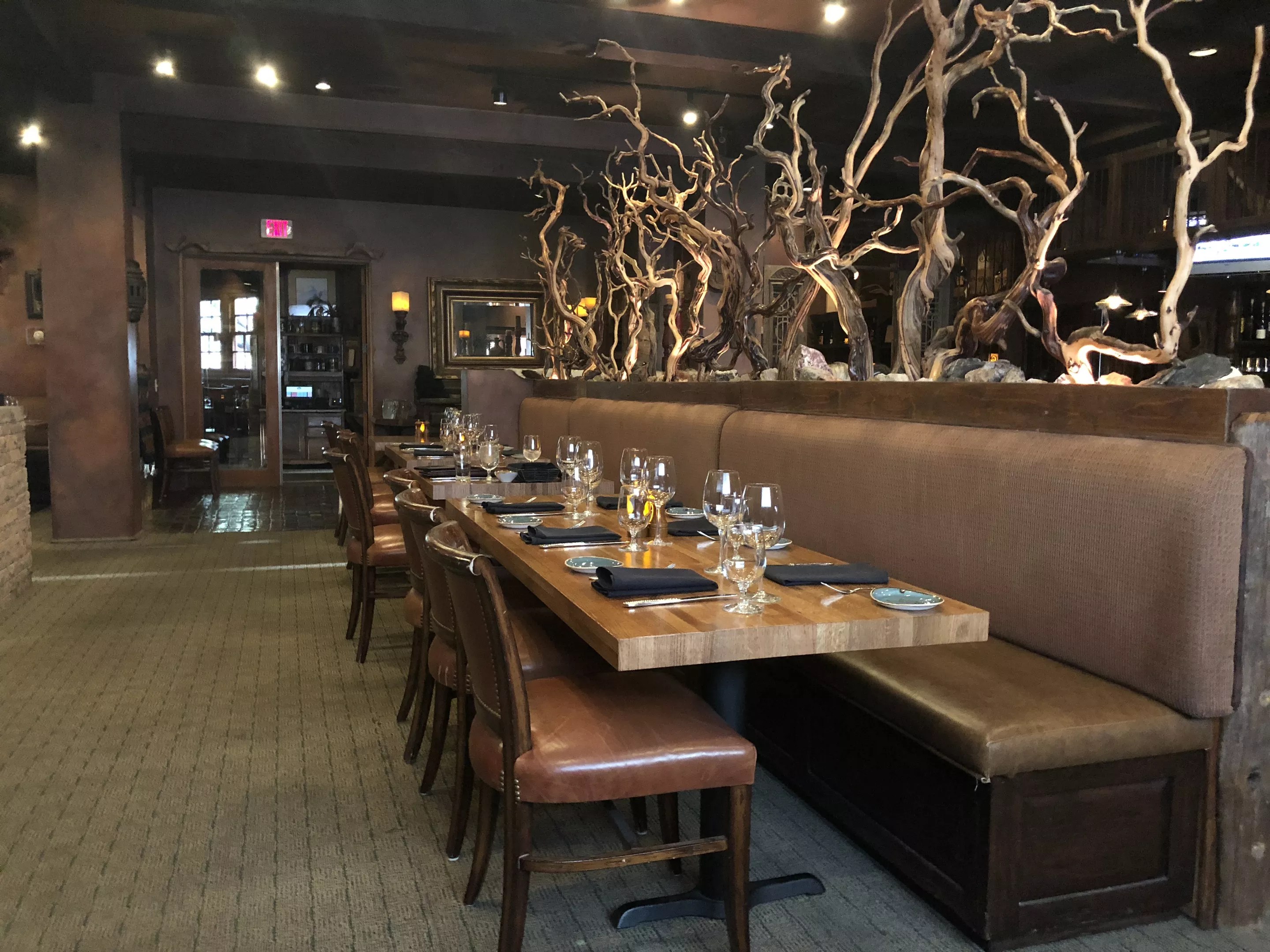 200-year-old manzanita branches twist in the main dining room at Cartwright’s.