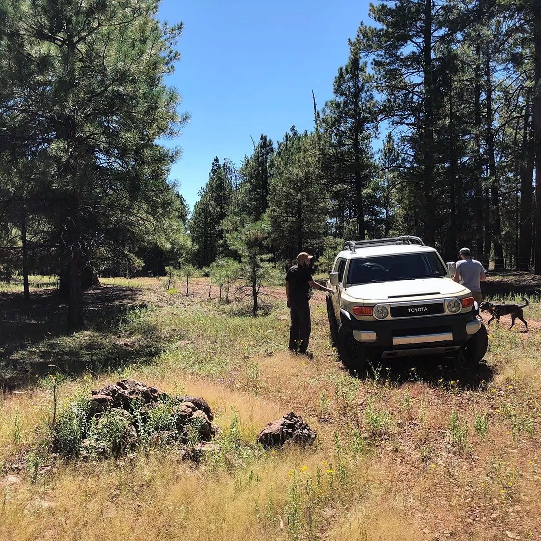 As his truck pulls into Prescott, the sun is still down. Traffic lights sear the gloaming. Vibber whips a turn off of the main strip and is soon barreling down a trail into the forest.