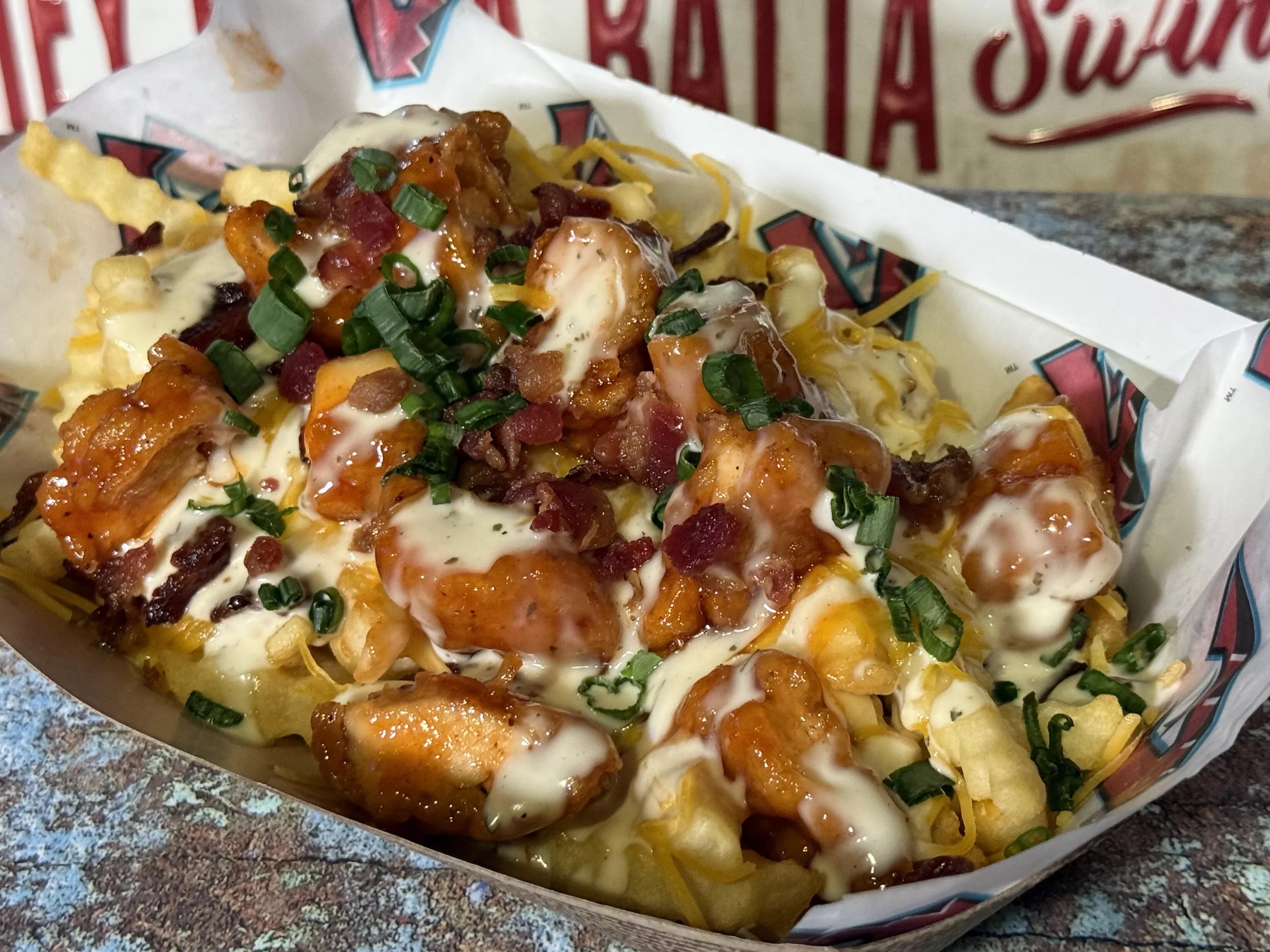 Hot honey makes everything better. And that’s the rationale behind Four Peaks’ new plate of crinkle cut fries served with jack cheese sauce, crispy hot honey chicken tenders, cheddar, bacon, raanch and scallions.