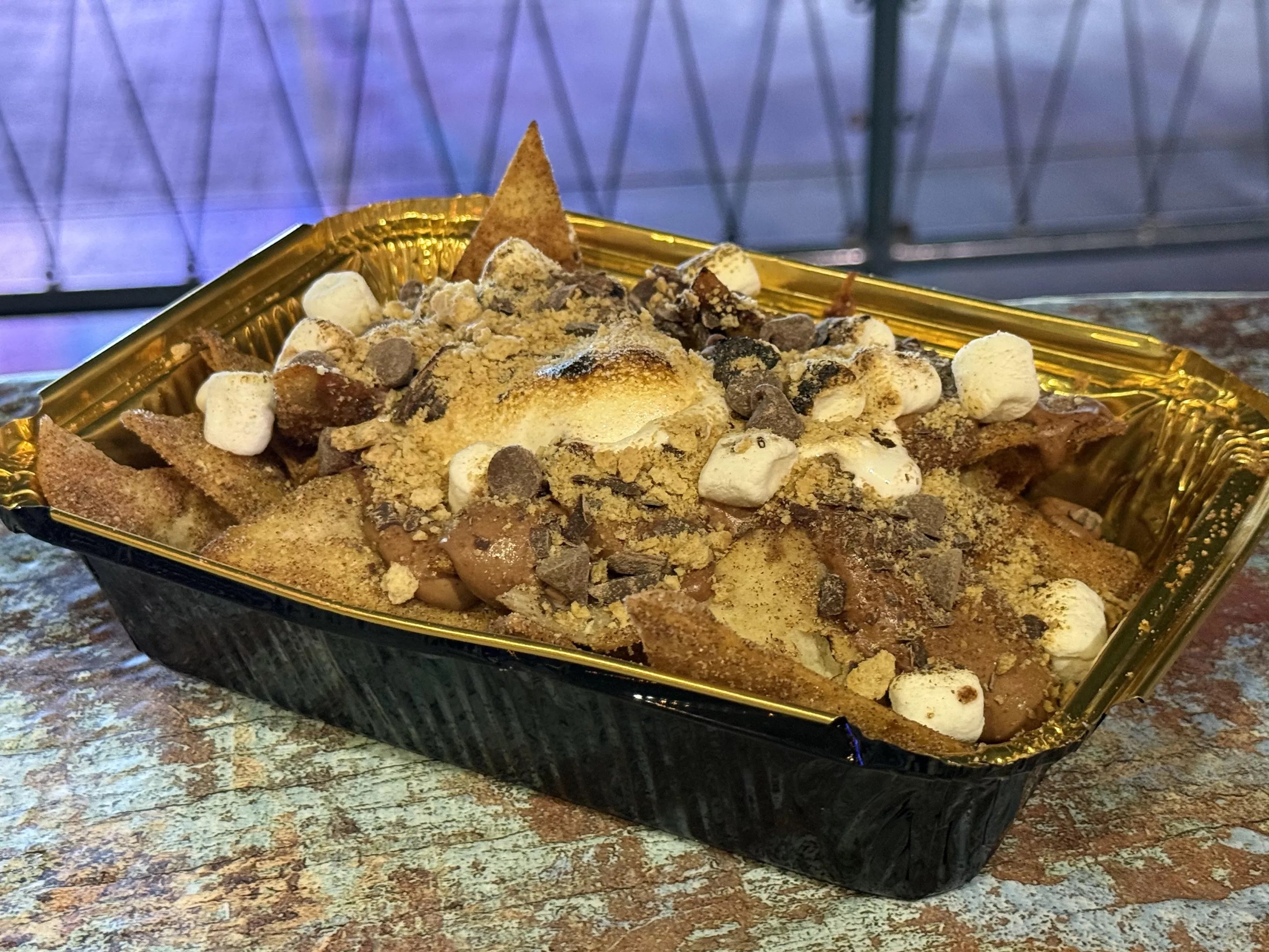 Not all nachos are topped with cheese and jalapeños at Chase Field. This season, game attendees can satisfy their sweet tooth with S’mores Nachos made with cinnamon sugar tortilla chips, chocolate cream, marshmallow fluff, mini marshmallows, chocolate pieces and graham cracker crumbs.
