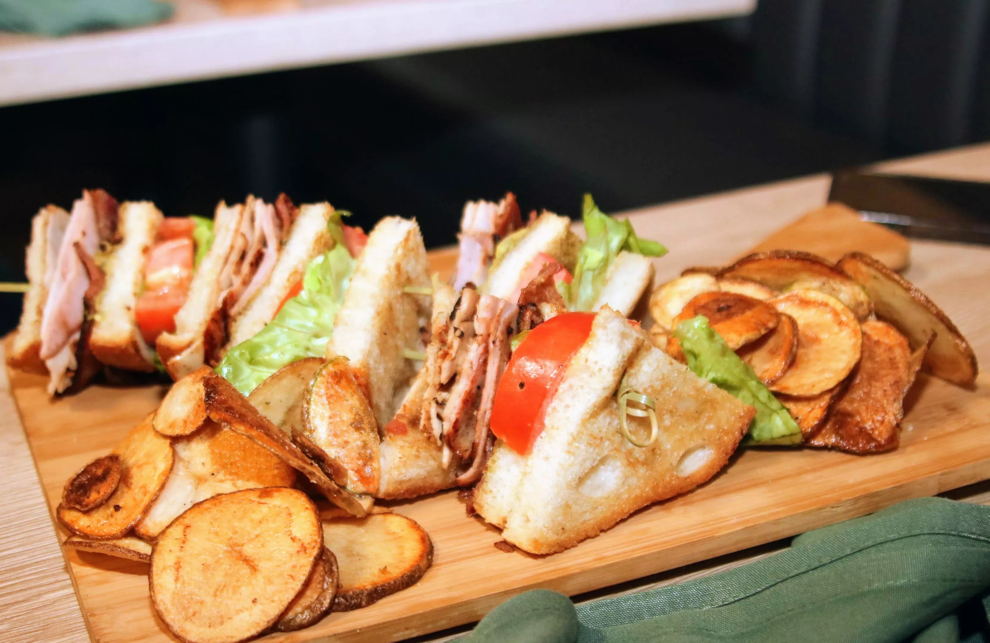 The Burque Club is packed with roasted turkey breast, Black Forest ham, avocado, pepper jack cheese and lemon aioli.