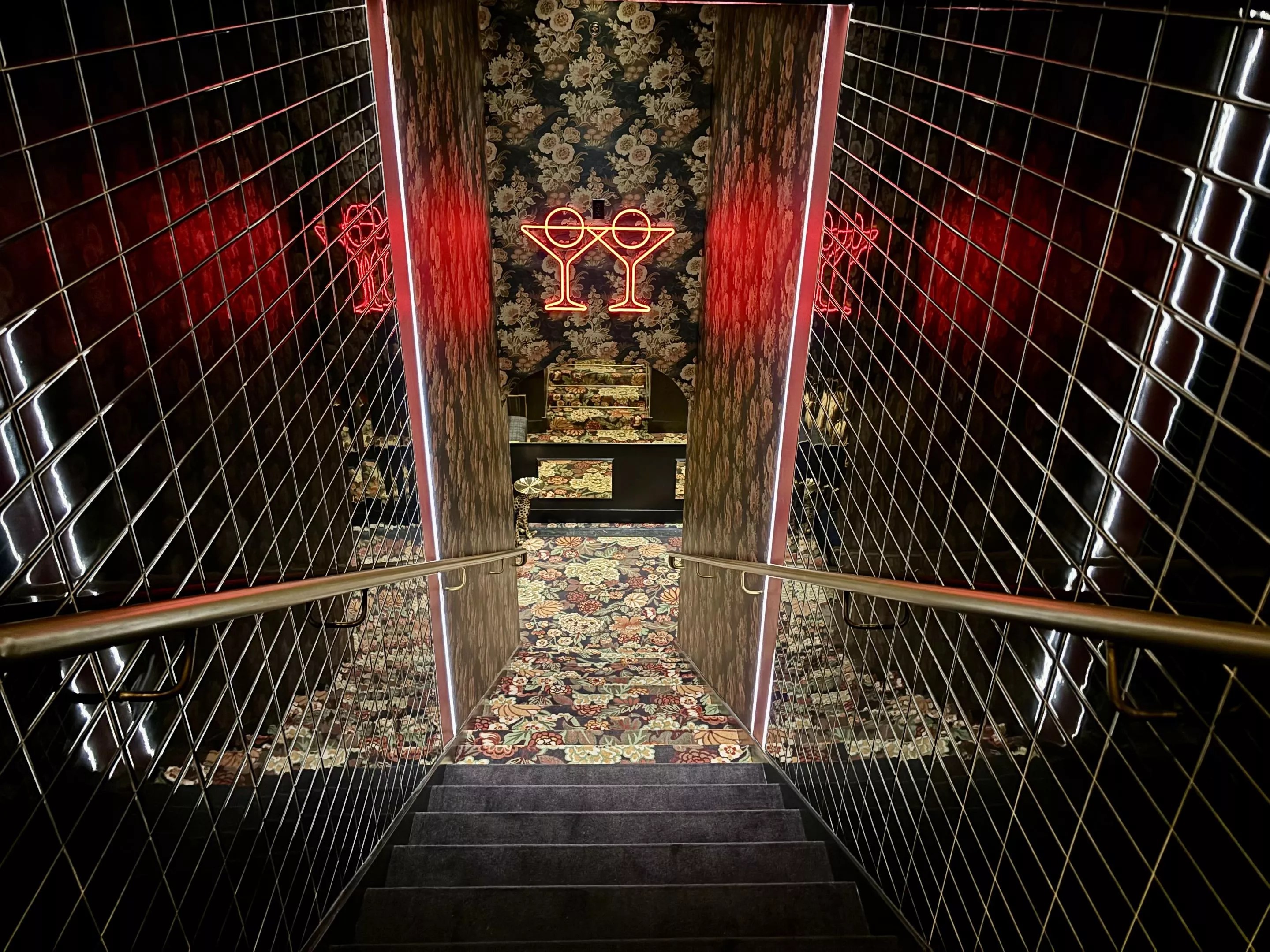 Traverse down a carpeted staircase, pass underneath glowing neon martinis and step through a red-mirrored entryway and you’ll find Tell Your Friends, a new speakeasy-style lounge.