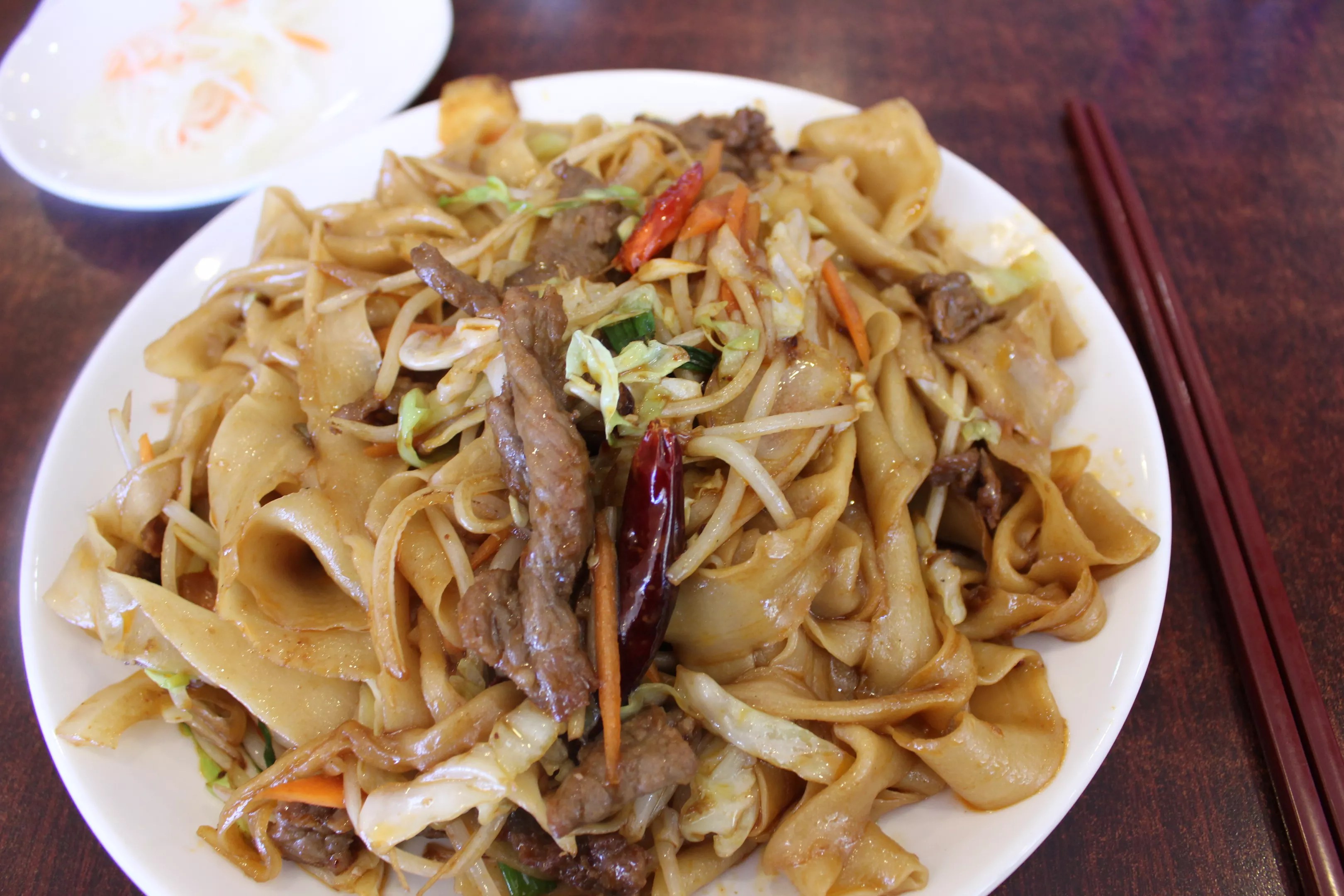 A heap of steaming noodles piled on my plate. The noodles were slick with XO sauce and colored with beef, carrots, sprouts, cabbage, and chiles. The XO sauce was mild and the beef plain, both undercard to the just-pulled noodles, which were clearly the main event.
