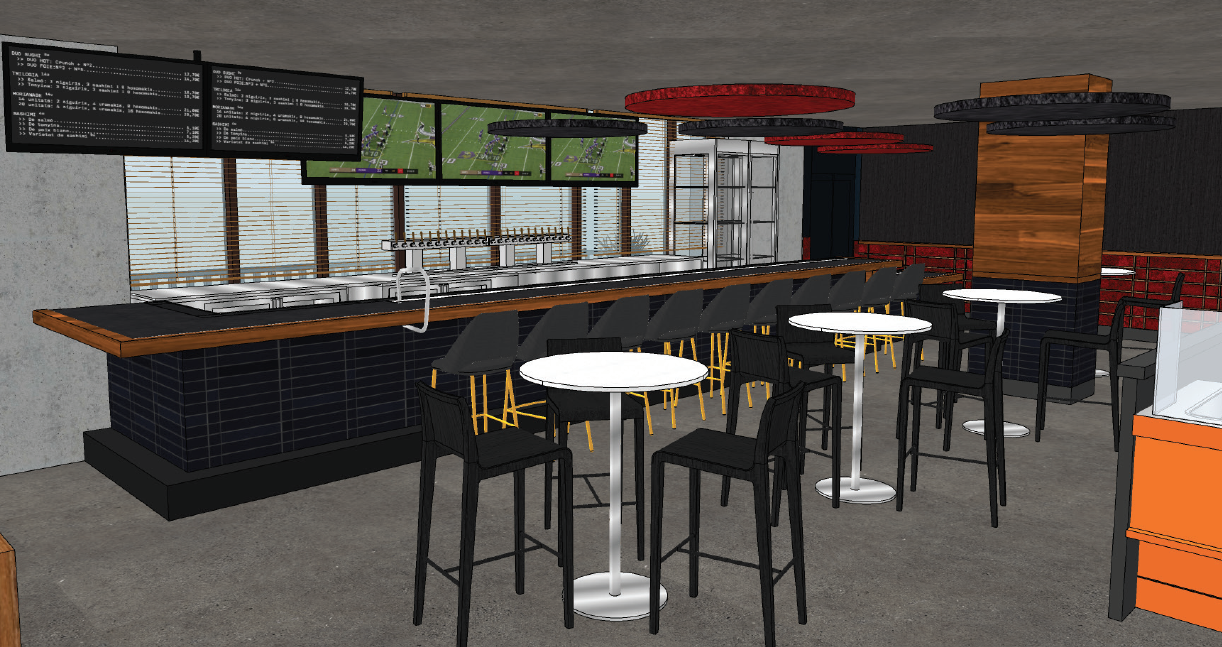 The 150-seat On Ash bar and restaurant is multilevel, offering indoor and outdoor seating across two floors. The upper story will have lounge-style seating for extra chill overlooks of University Drive between Farmer and Ash Avenues.