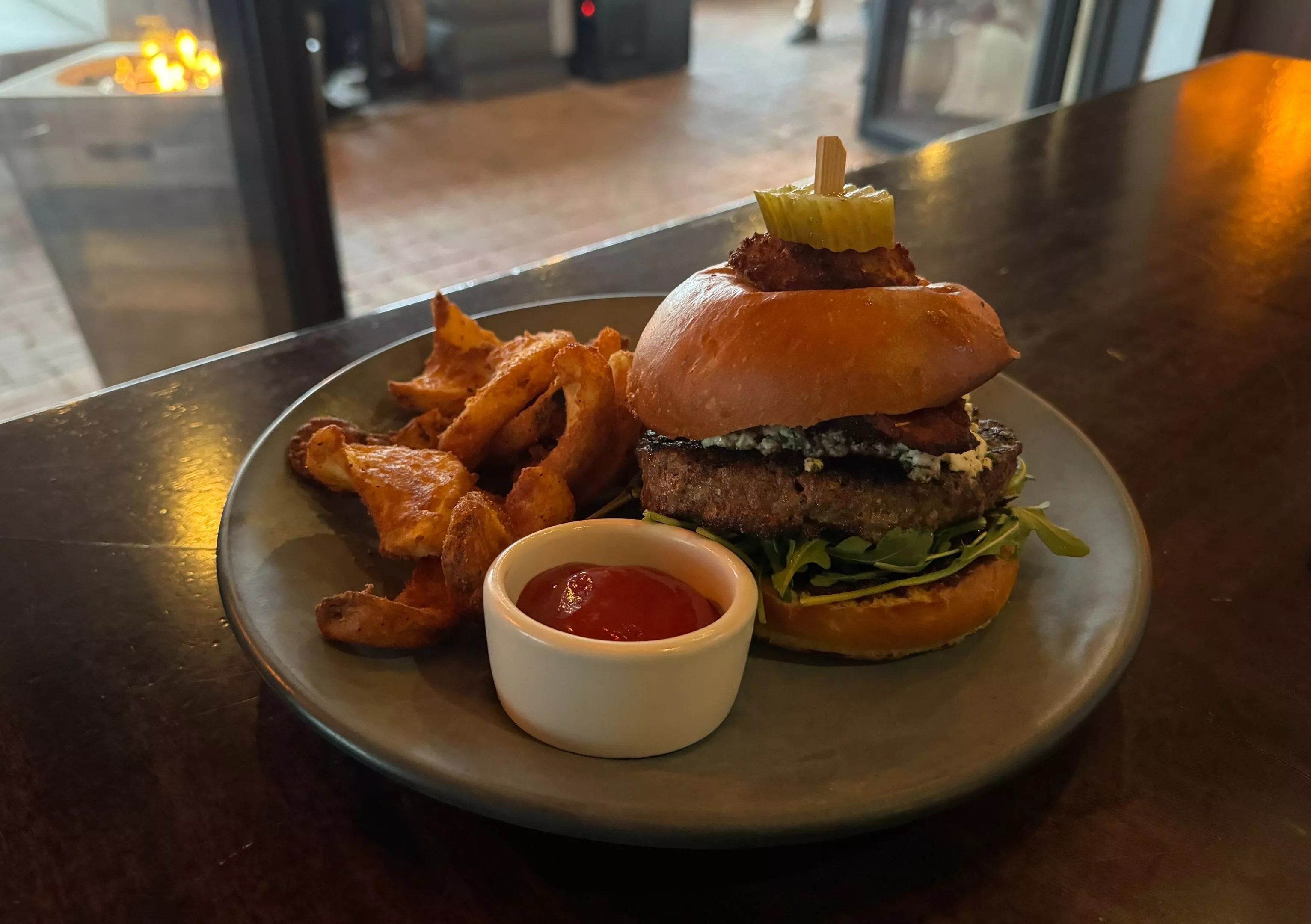 Burgers, pizza and other pub favorites make up the menu at Orchard Tavern. The Figgy Piggy Burger is topped with bacon, fig jam, herbed goat cheese, arugula and an onion ring.
